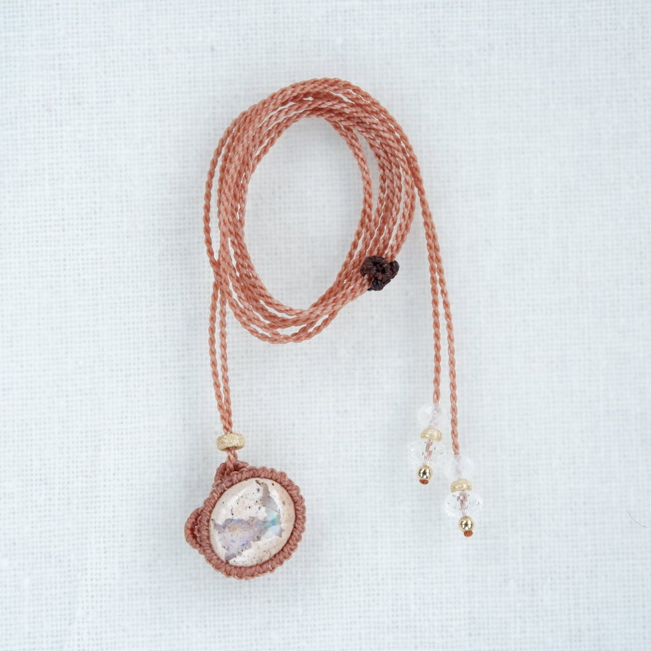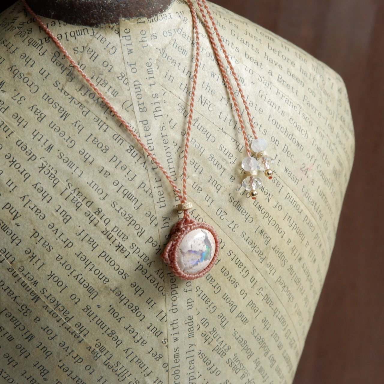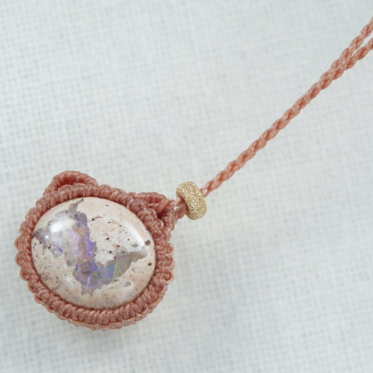 【1点もの】カンテラオパールの石猫ちゃんネックレス * マクラメ編み天然石アクセサリー 14kgf
