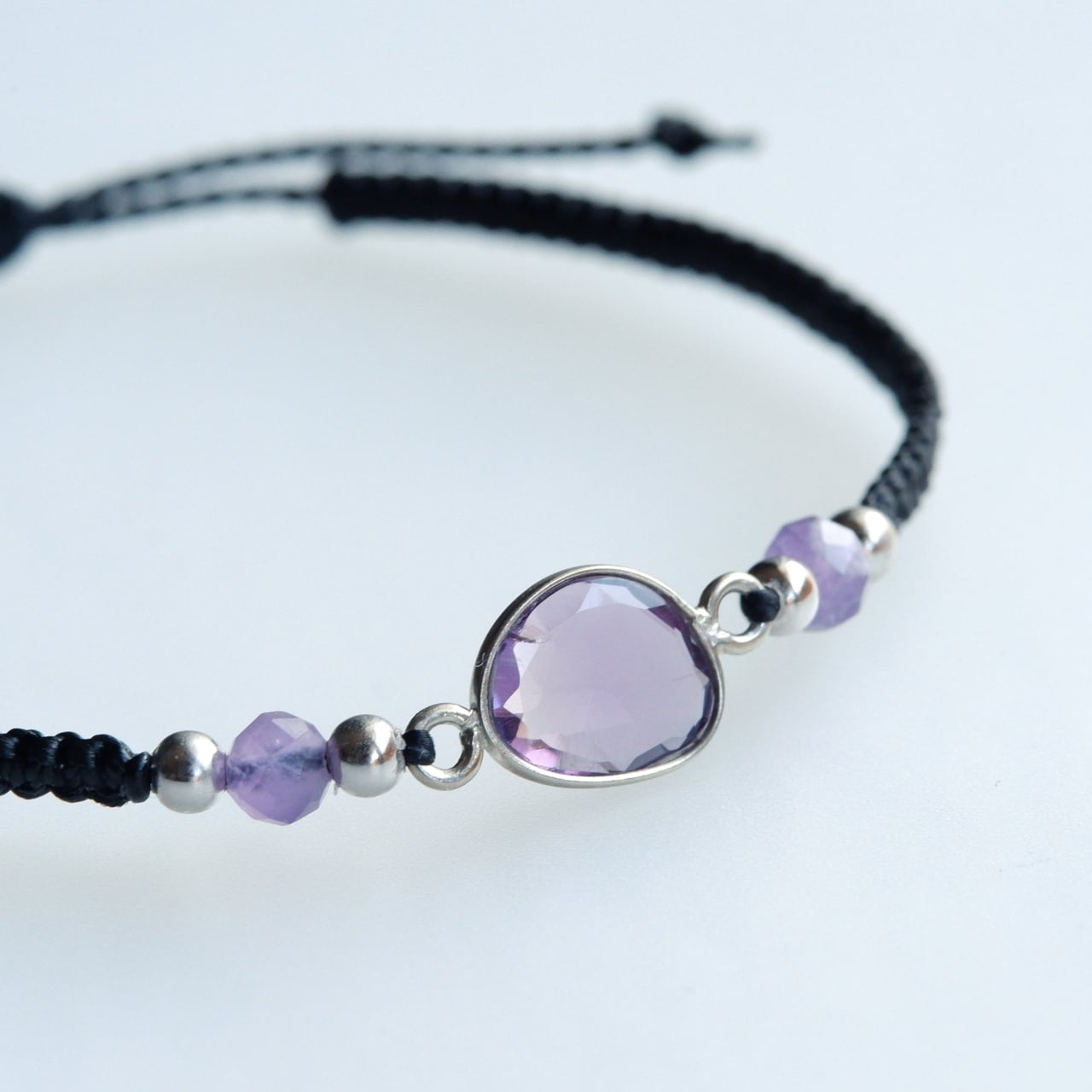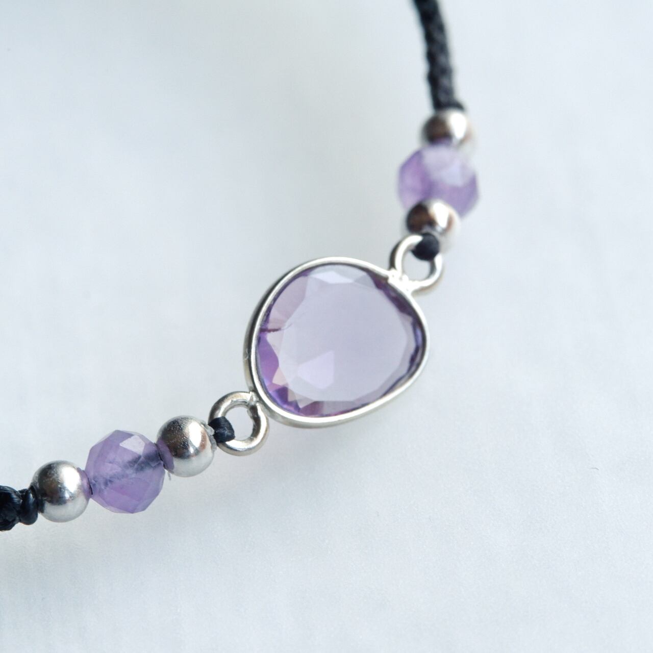 アメジストのシンプルマクラメブレスレット * マクラメ編みsilver925アクセサリー