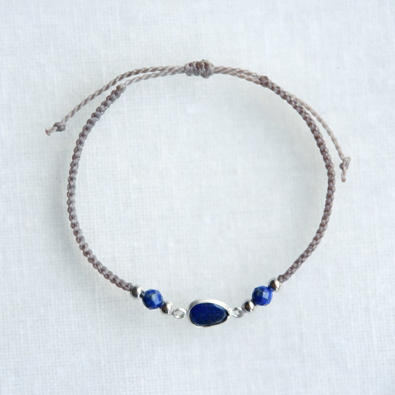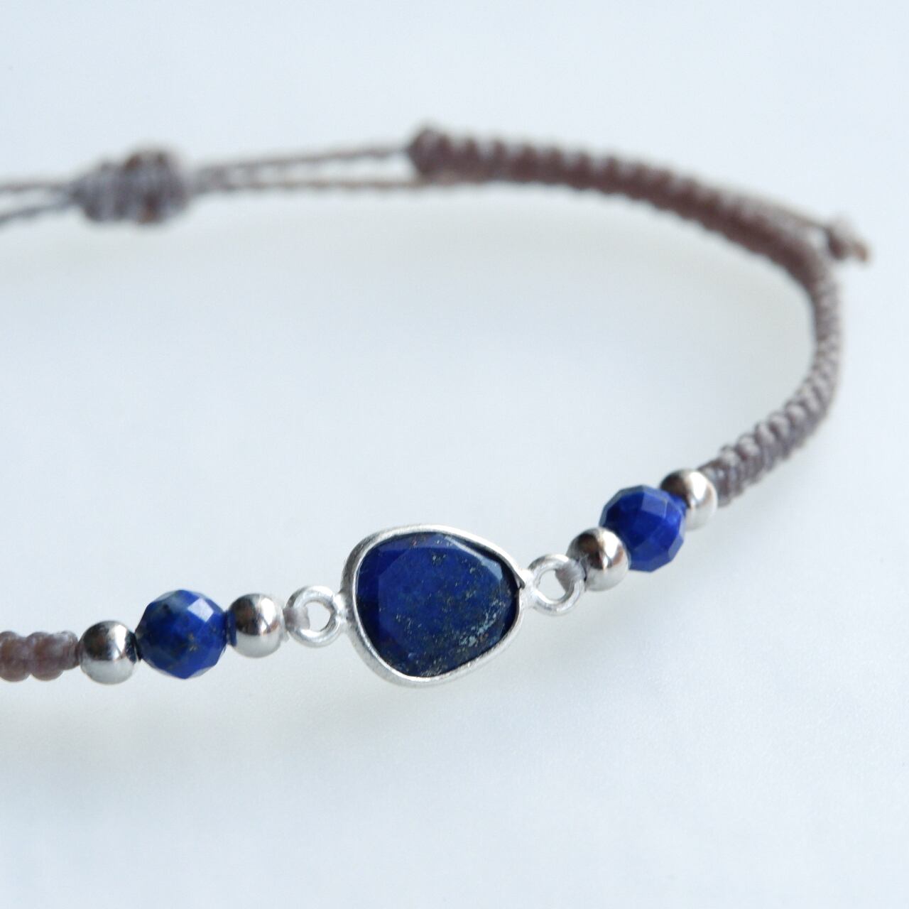 ラピスラズリのシンプルマクラメブレスレット * マクラメ編みsilver925アクセサリー