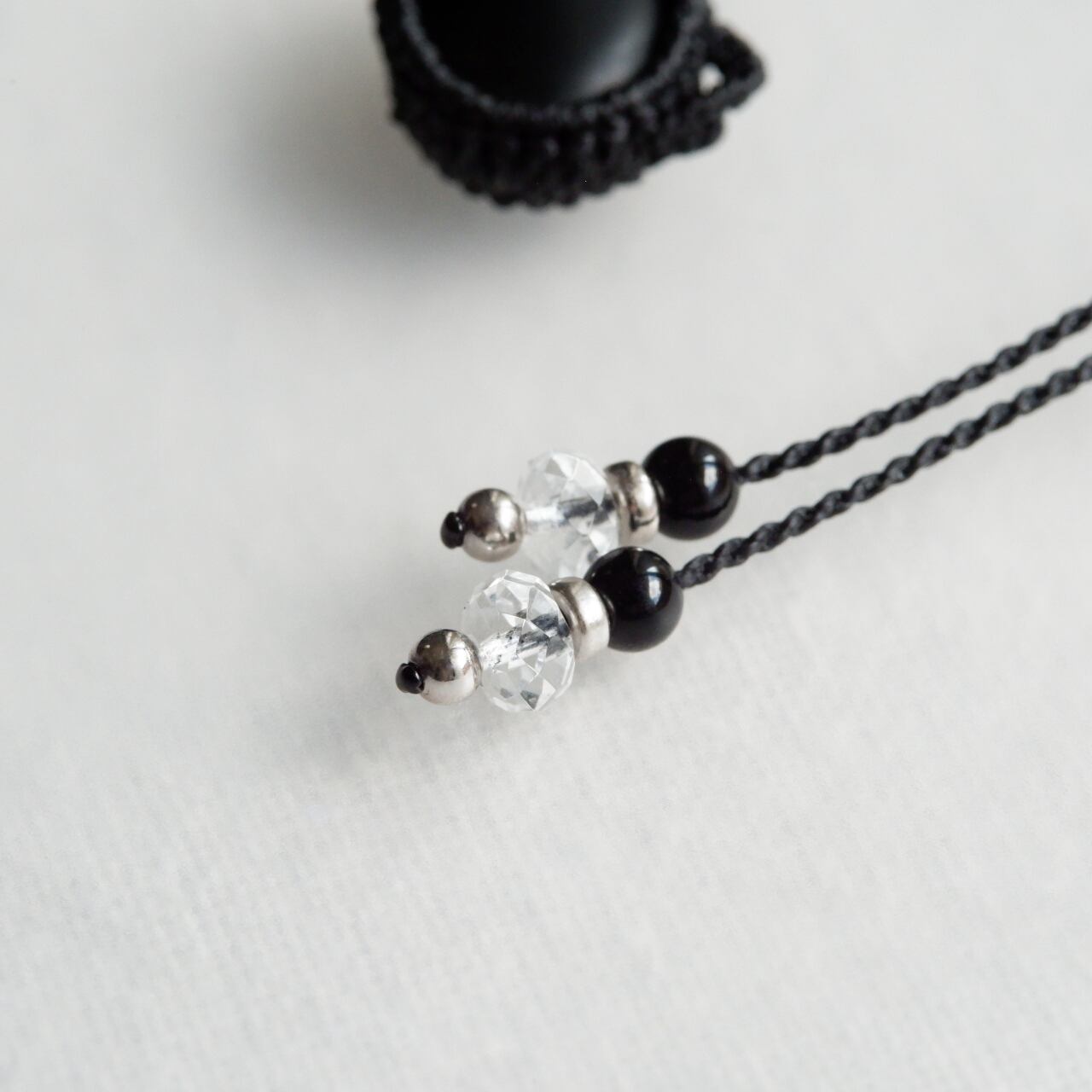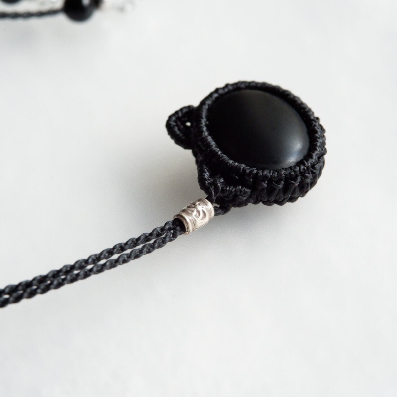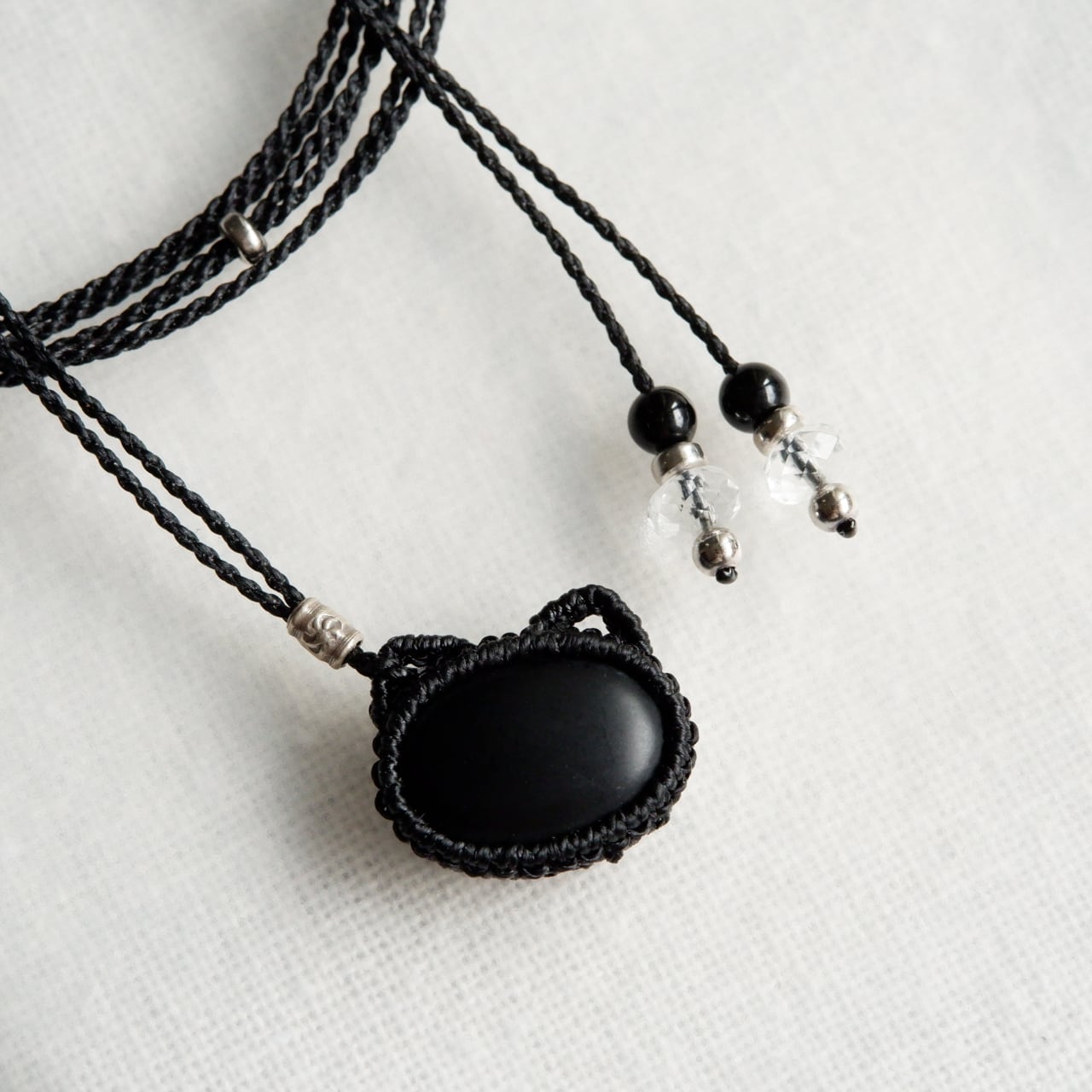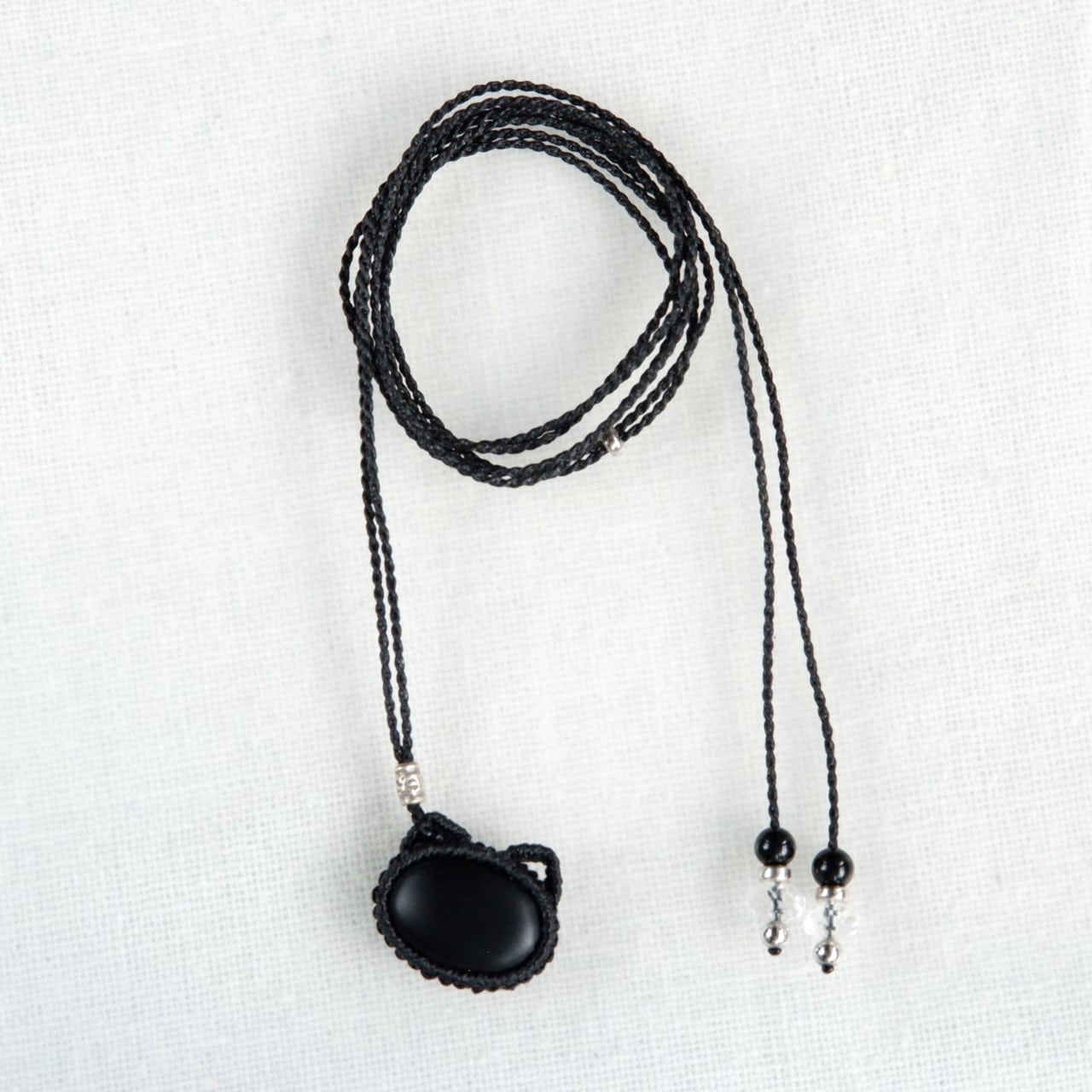 フロストオニキスの石猫ちゃんネックレス 黒猫 * マクラメ編みsilver925アクセサリー