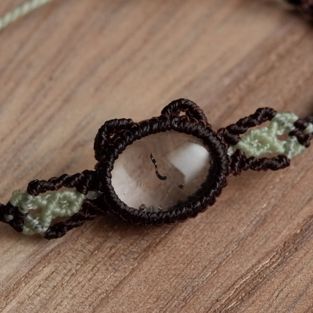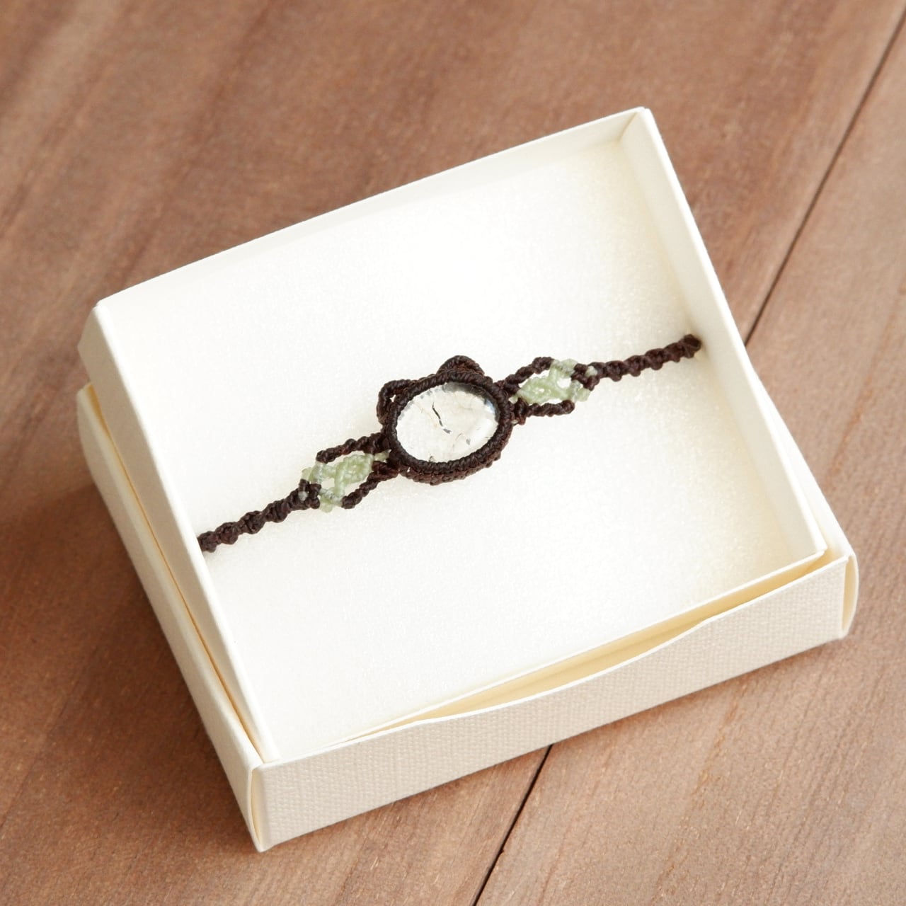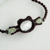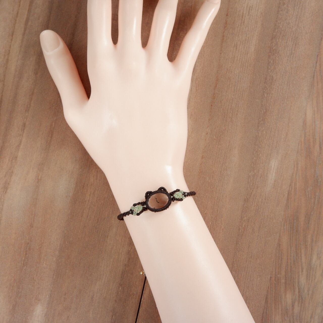 【1点もの】ハイアライトオパールの石猫ちゃんブレスレット * マクラメ編み天然石アクセサリー