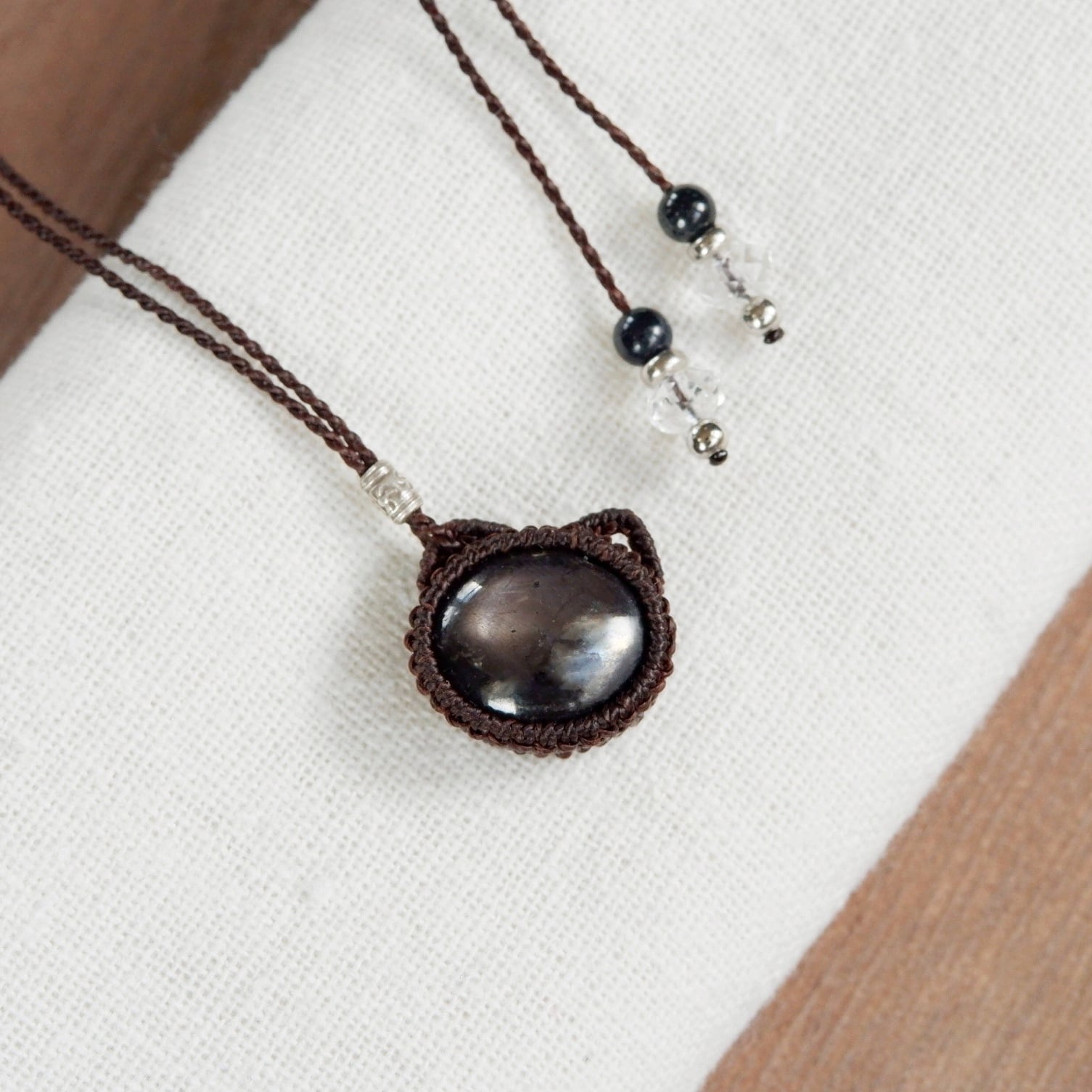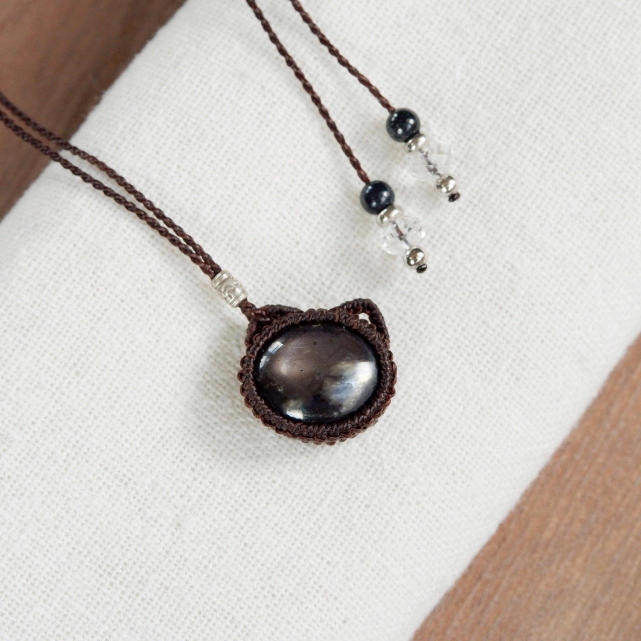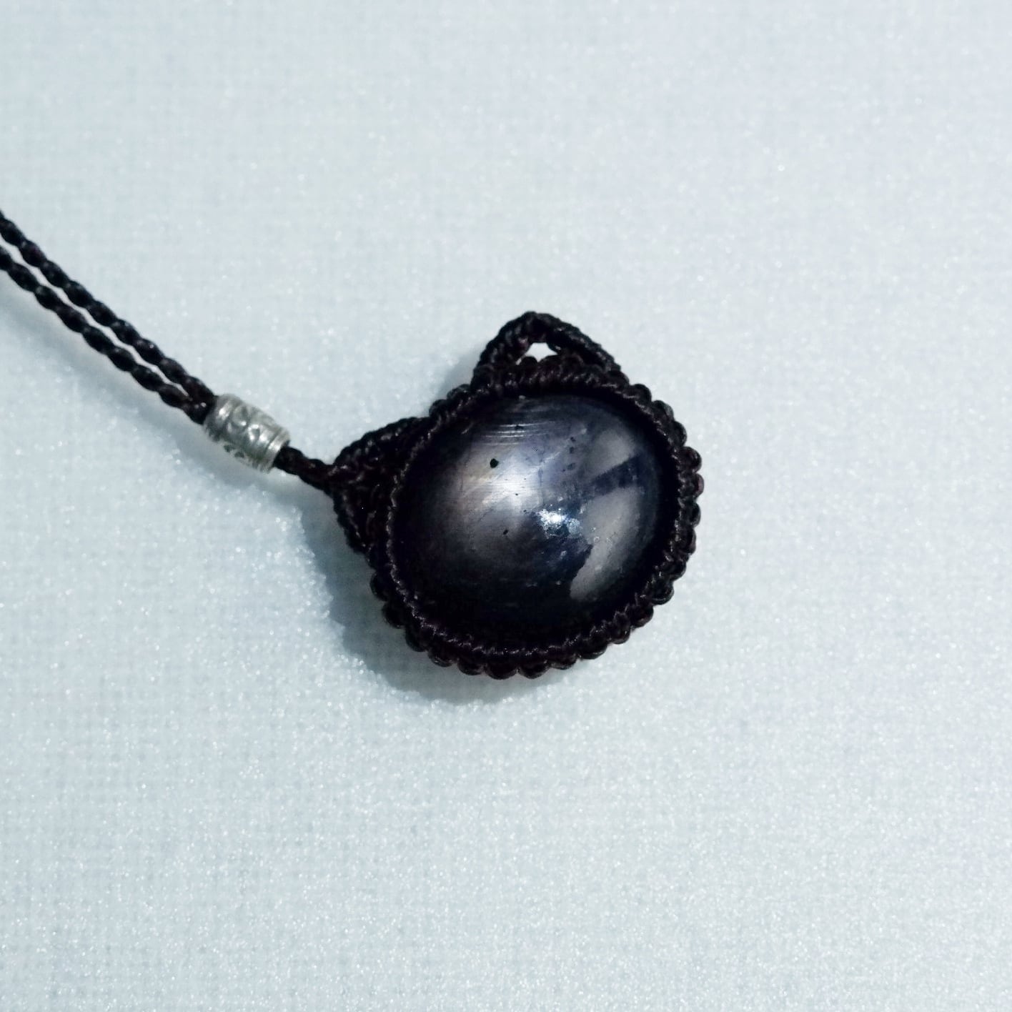 【1点もの】スターサファイアの石猫ちゃんネックレス * マクラメ編みsilver925アクセサリー