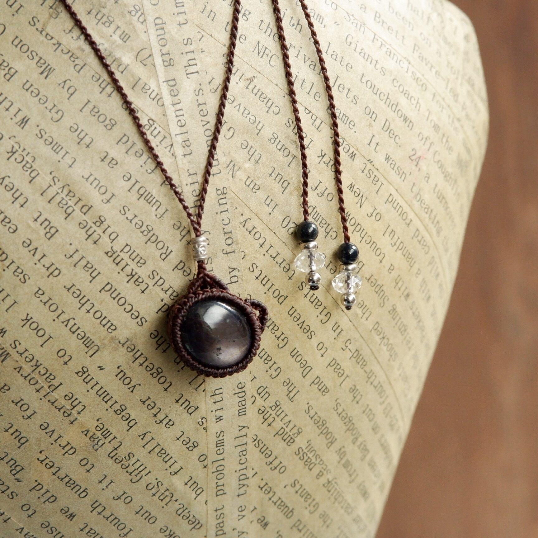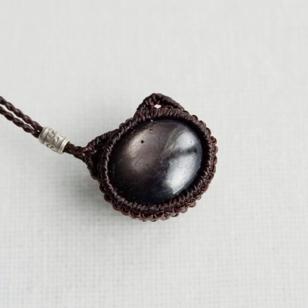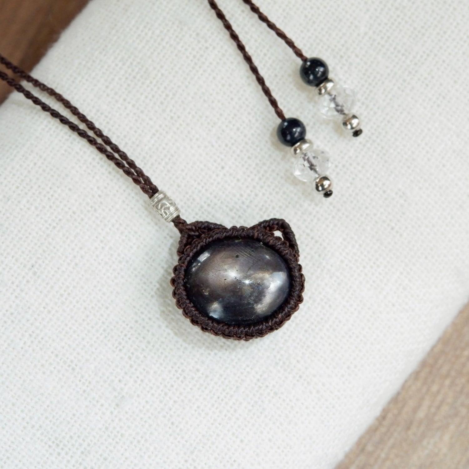 【1点もの】スターサファイアの石猫ちゃんネックレス * マクラメ編みsilver925アクセサリー