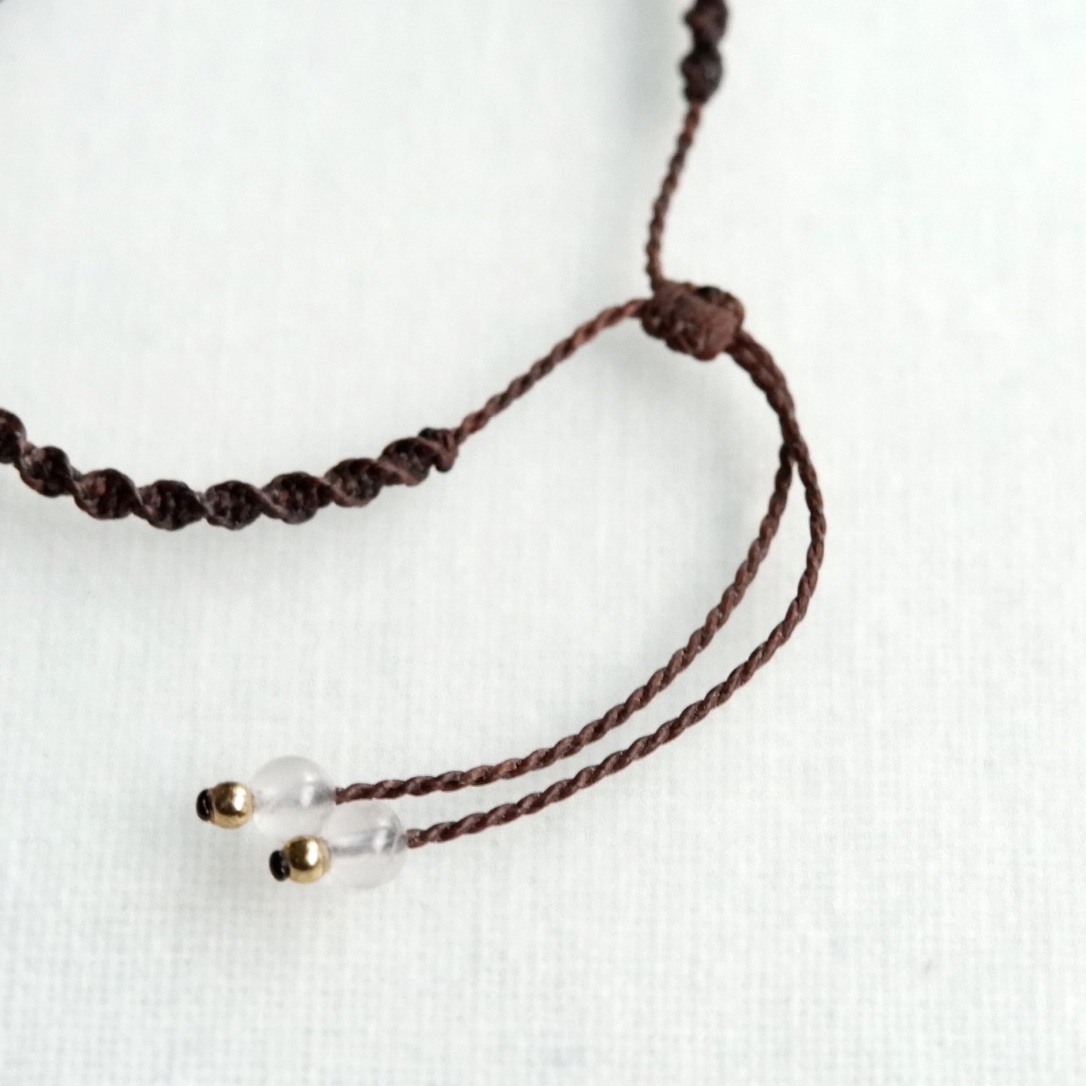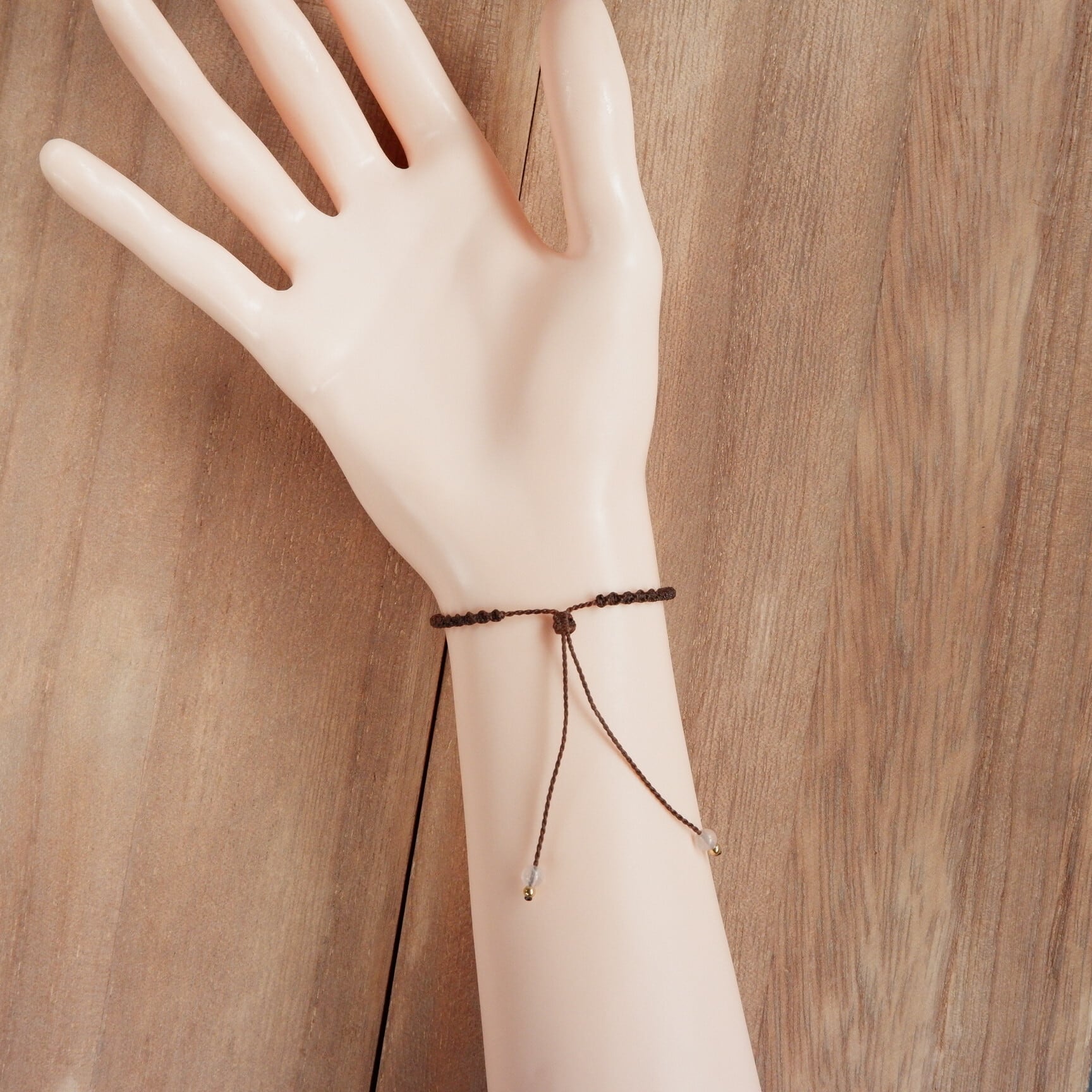 紐先端のビーズにはローズクォーツを使用しました。