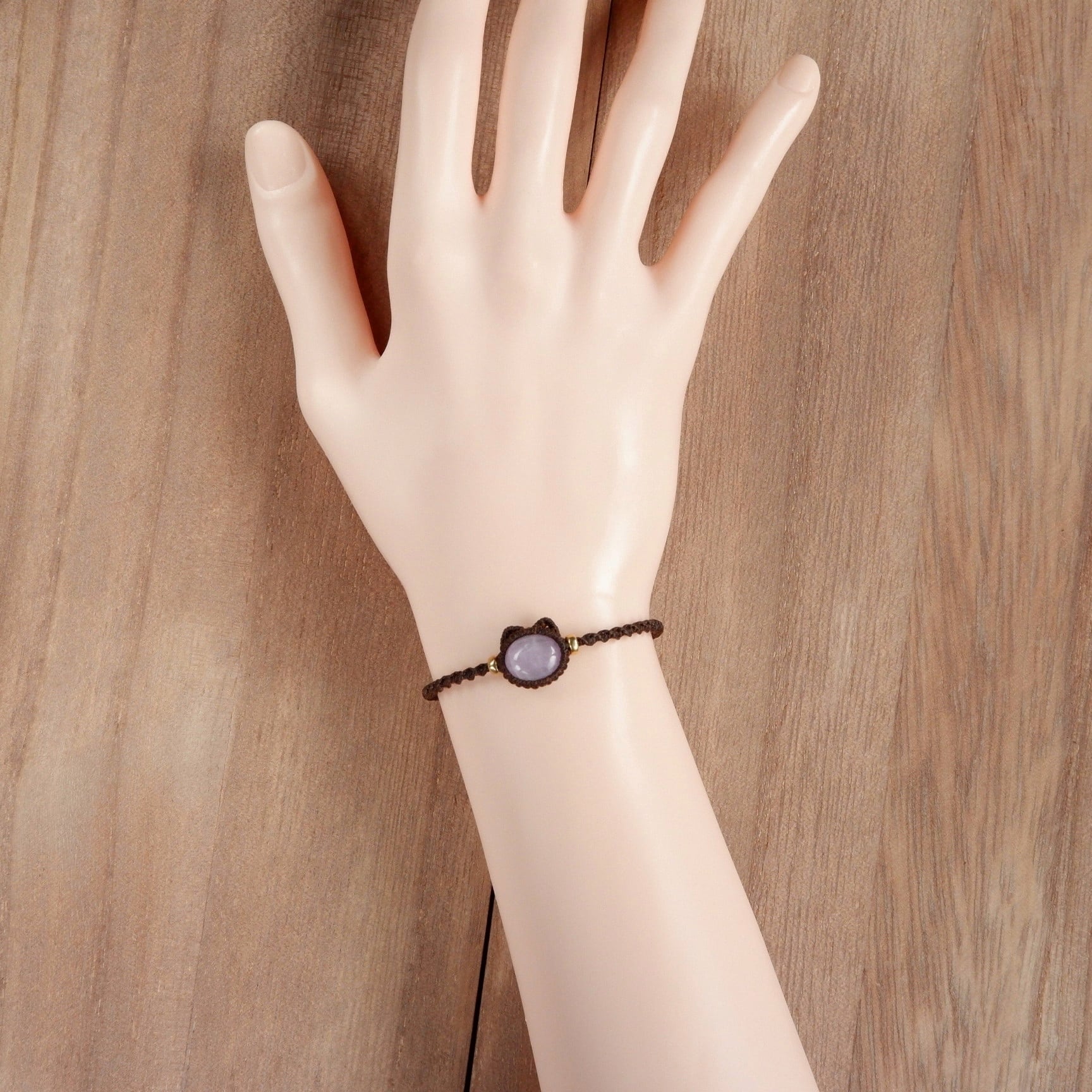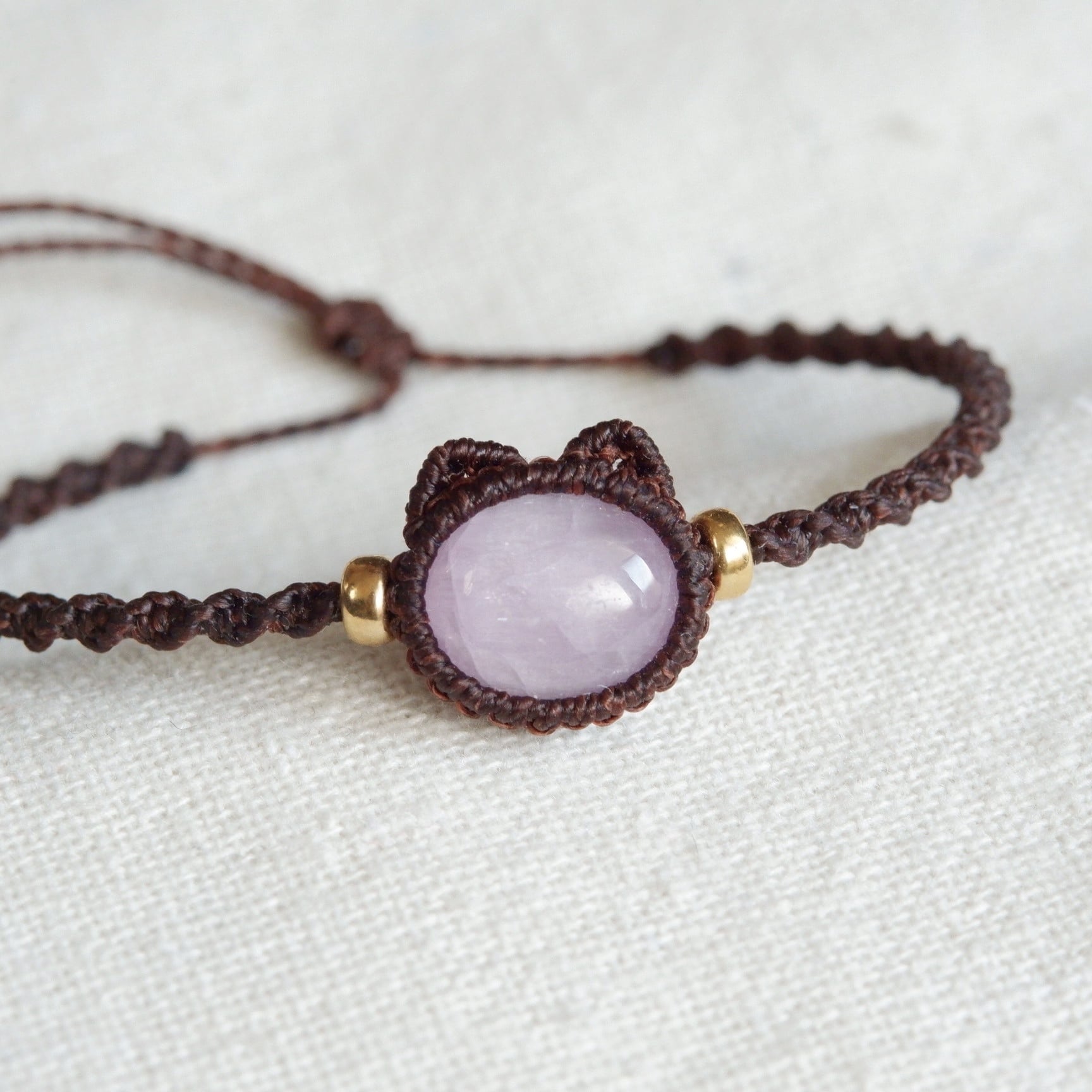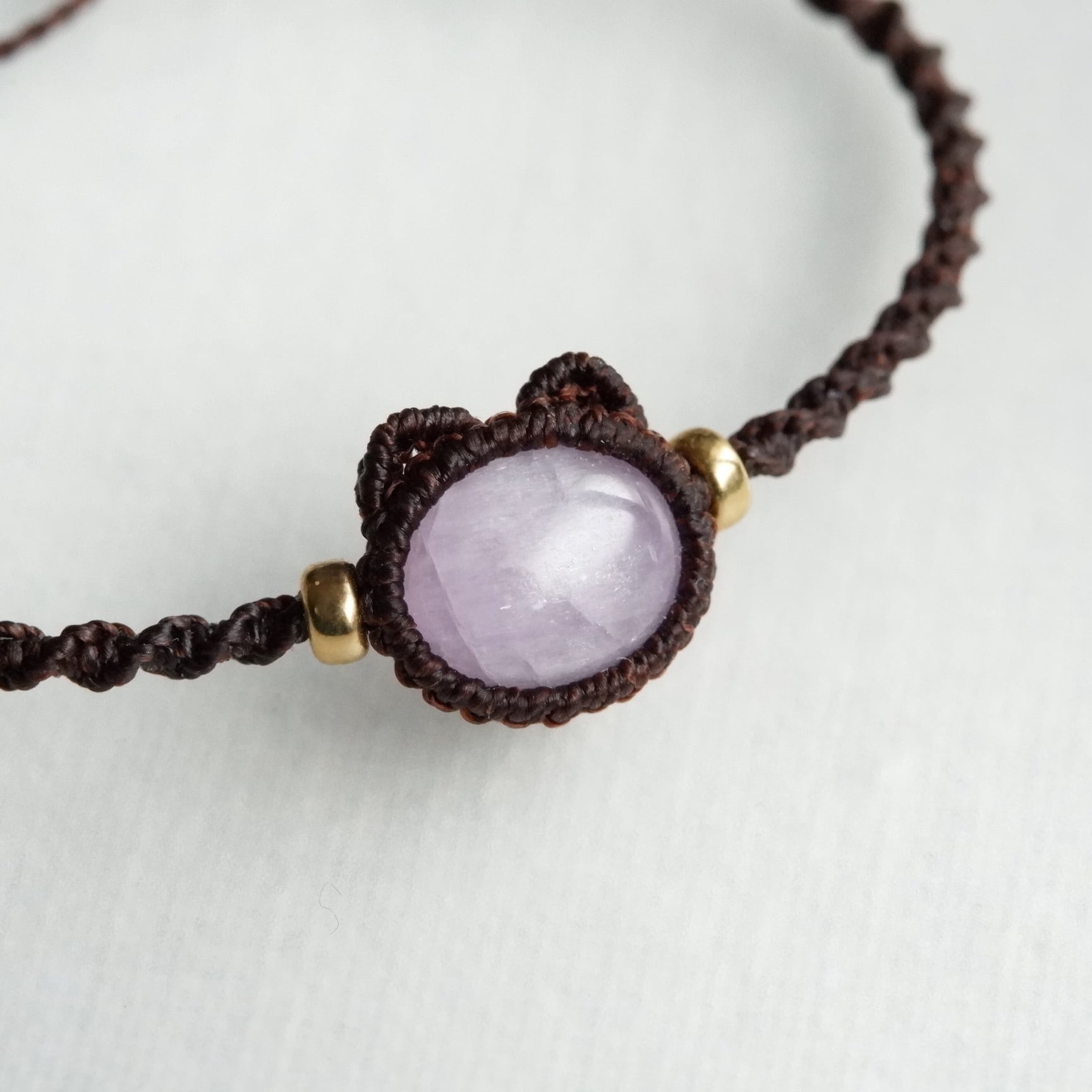 【受注生産】クンツァイトの猫ちゃんブレスレット * マクラメ編み天然石アクセサリー