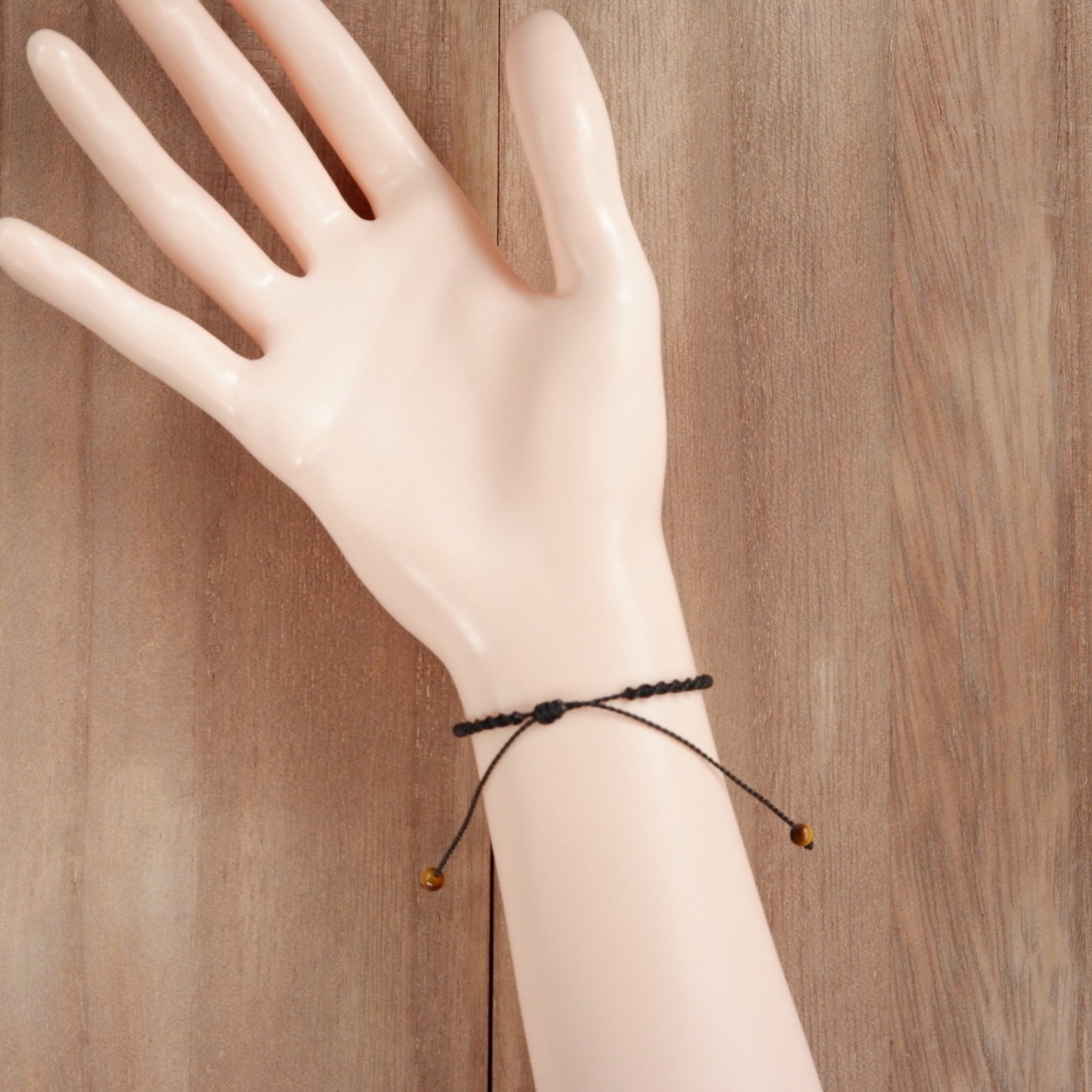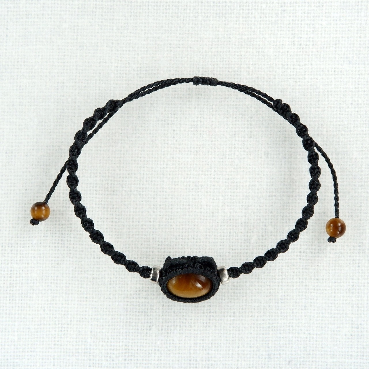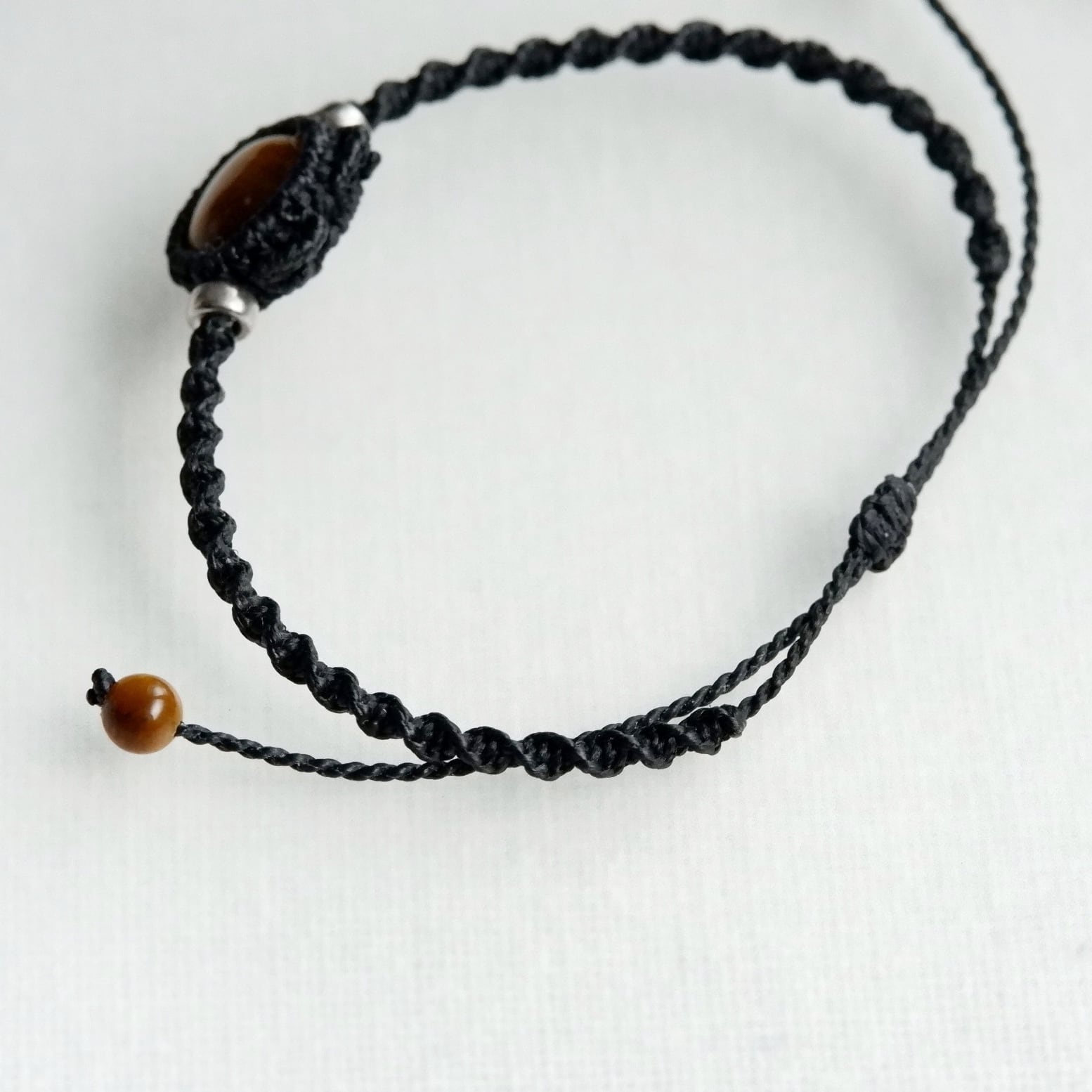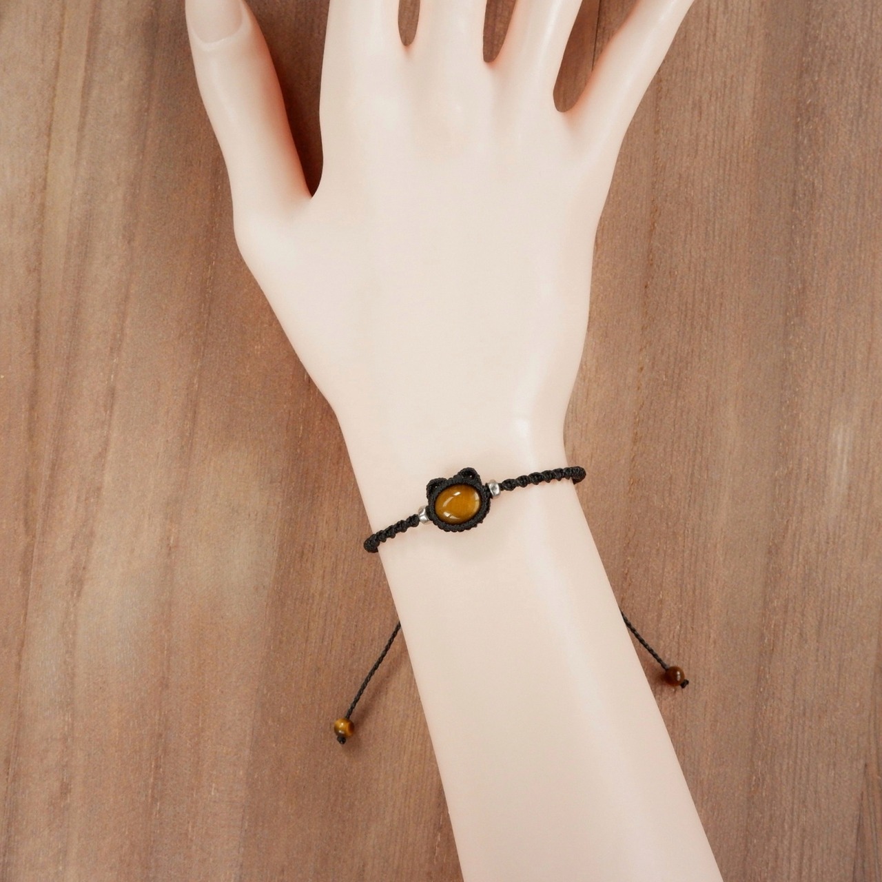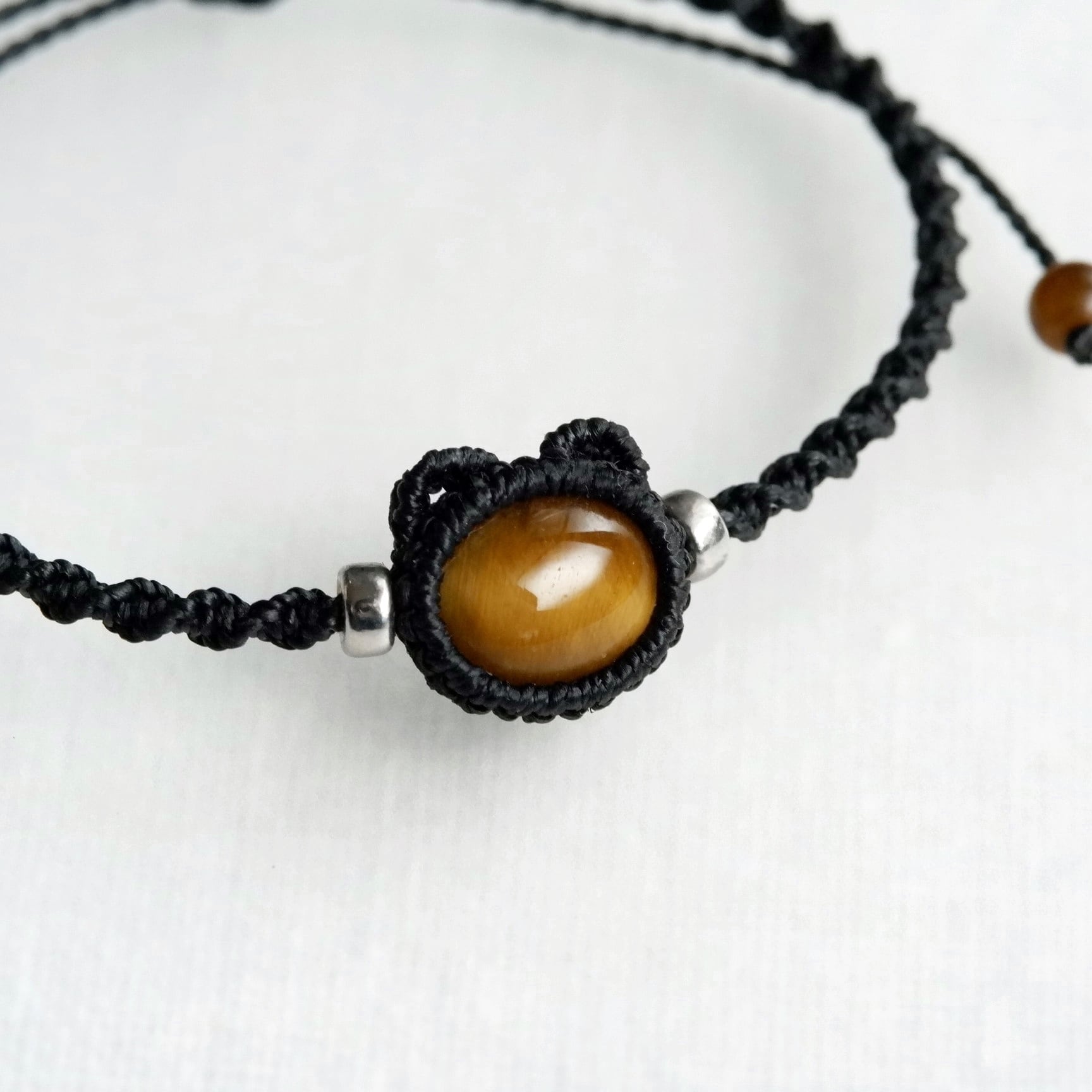 【受注生産】タイガーアイの黒猫ちゃんブレスレット * マクラメ編み天然石アクセサリー