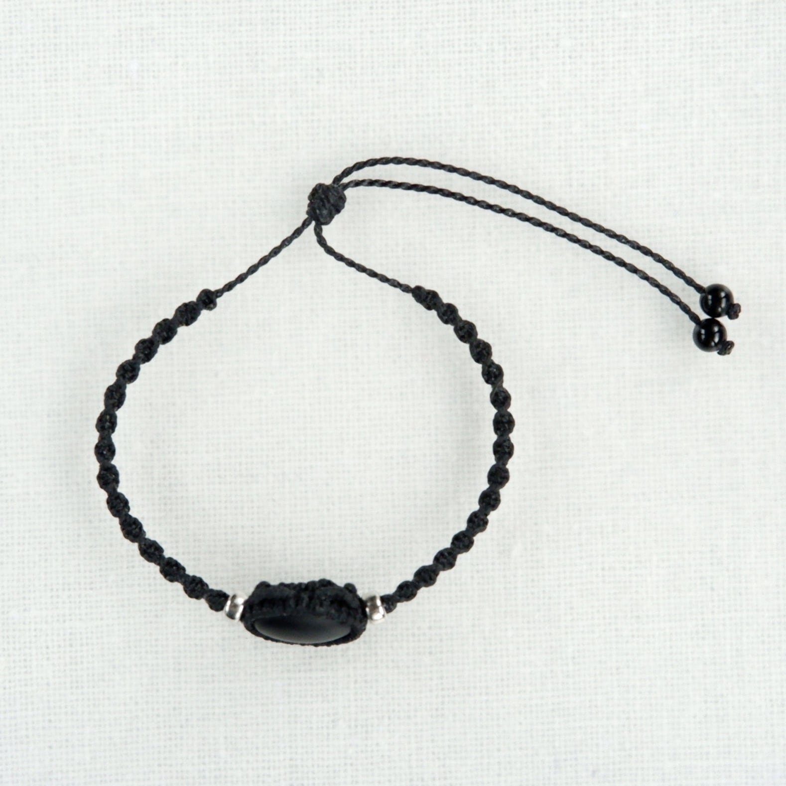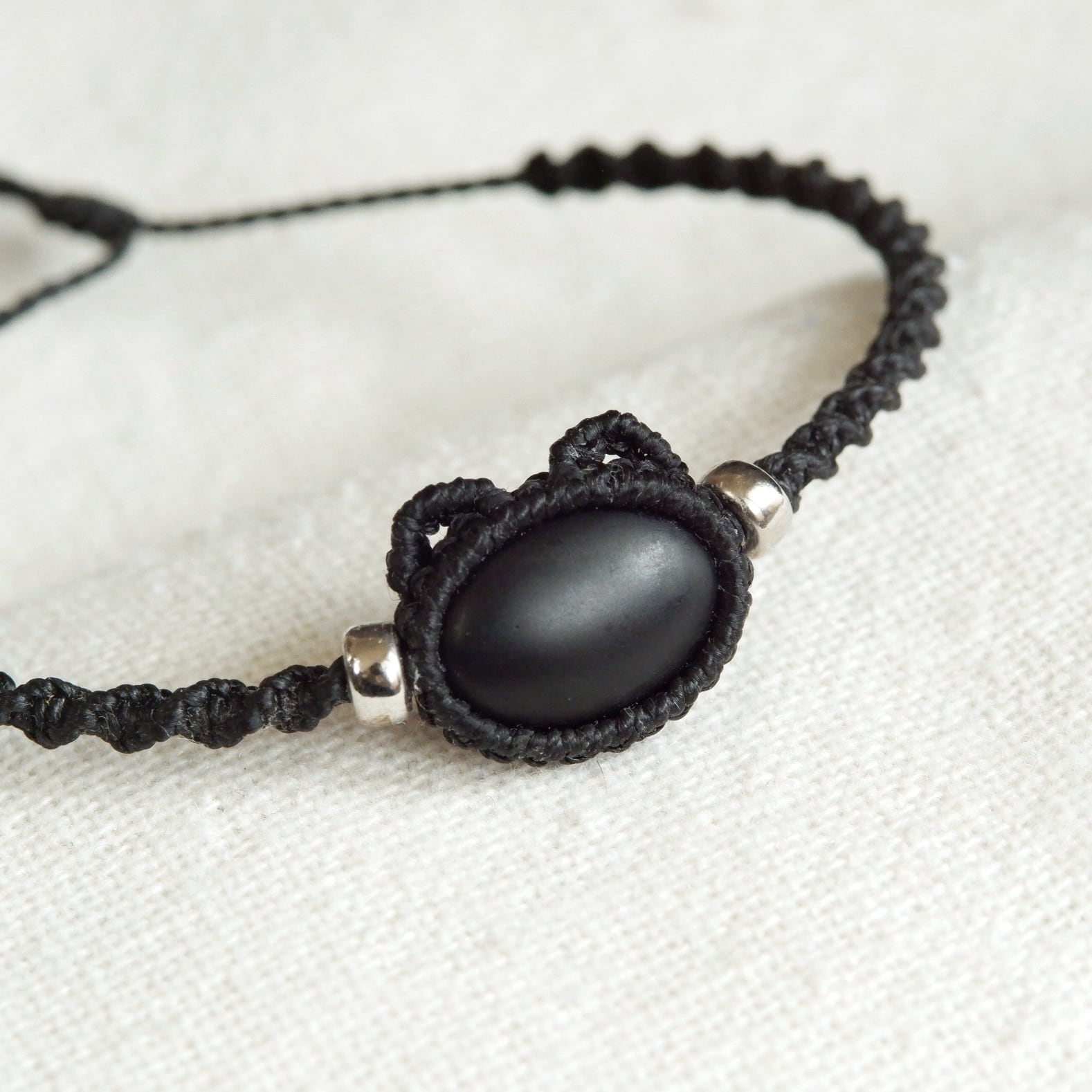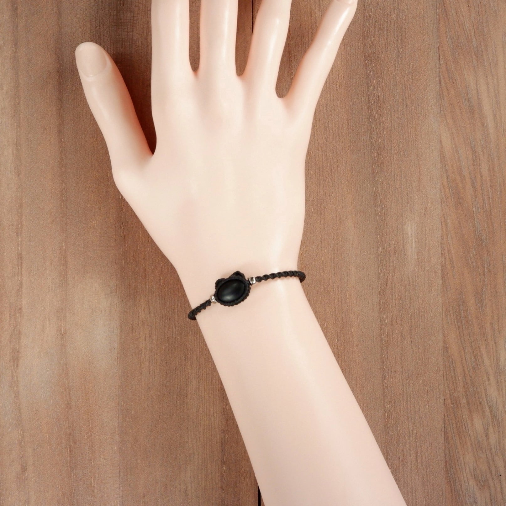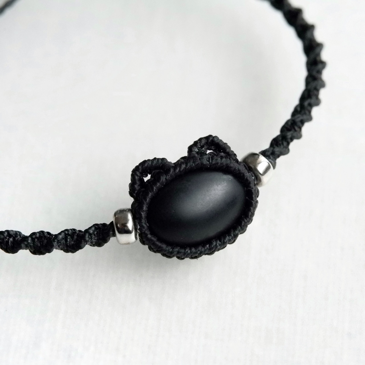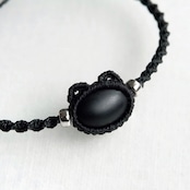 【受注生産】フロストオニキスの黒猫ちゃんブレスレット * マクラメ編み天然石アクセサリー