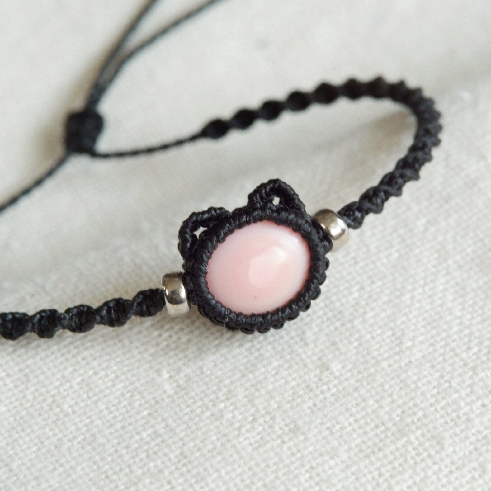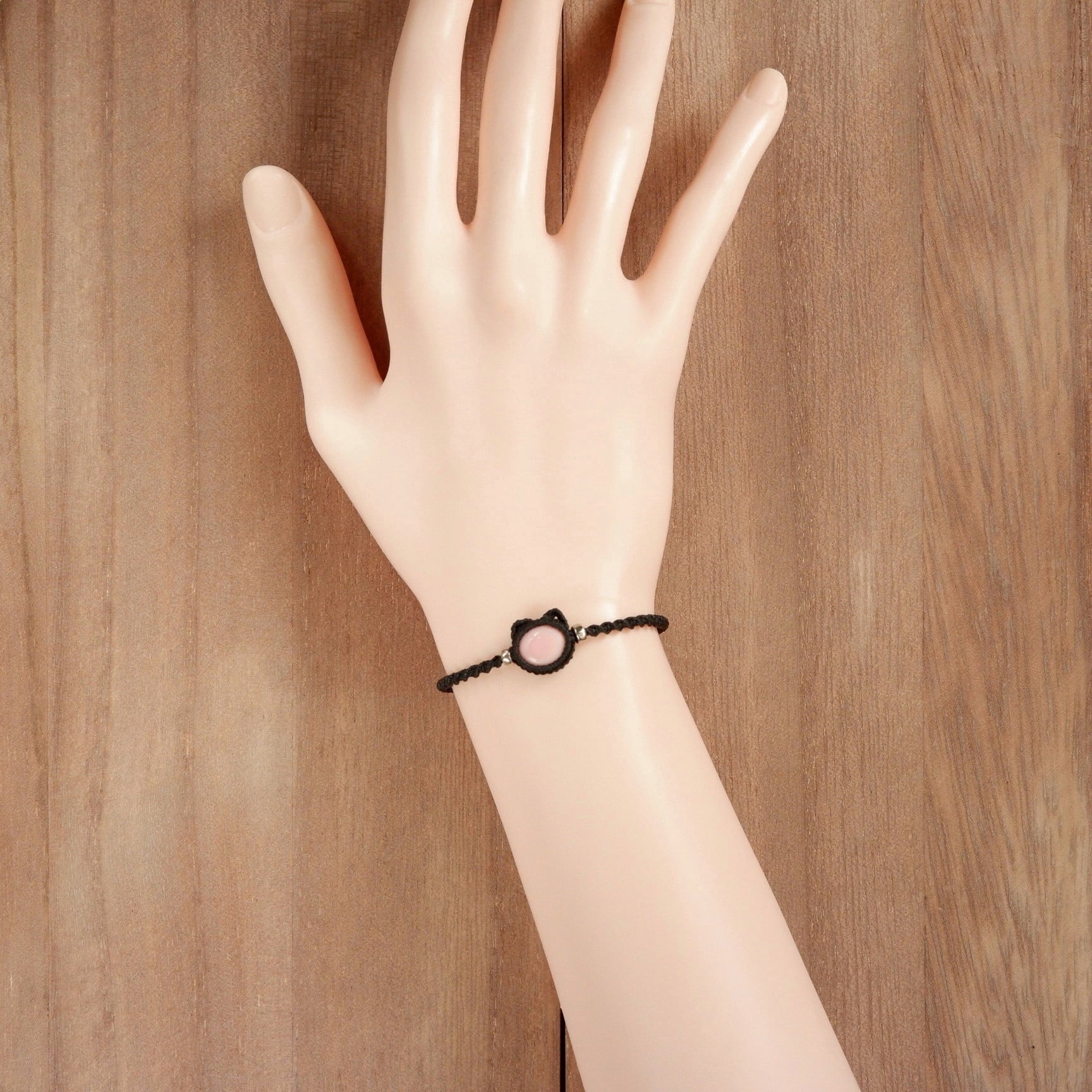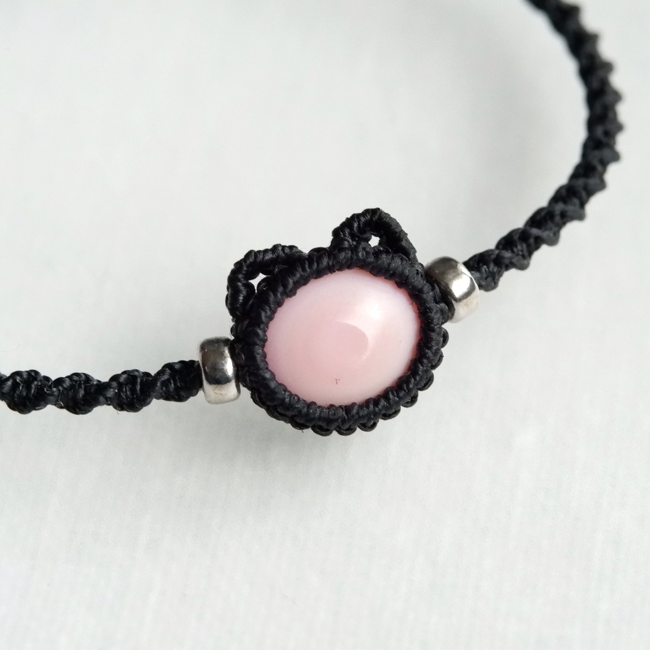 毛並みは真っ黒、肉球はピンク色!な黒猫イメージのブレスレットです。