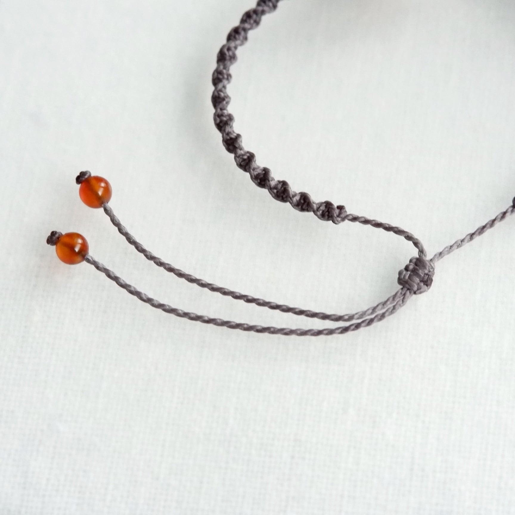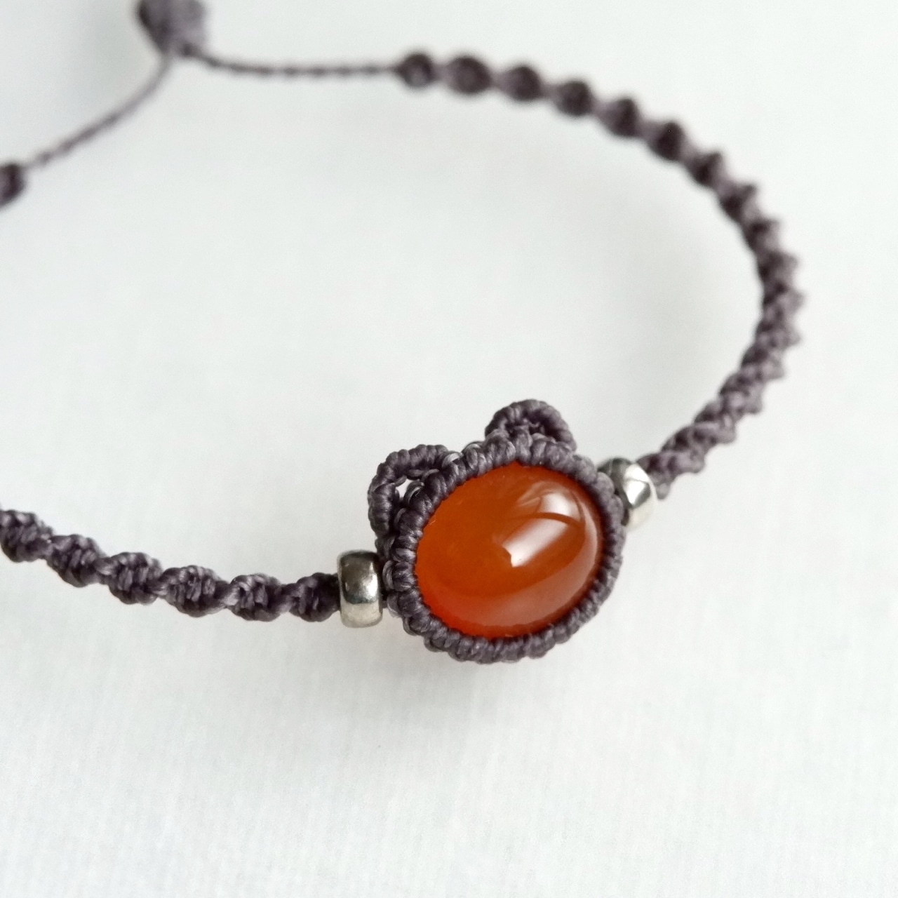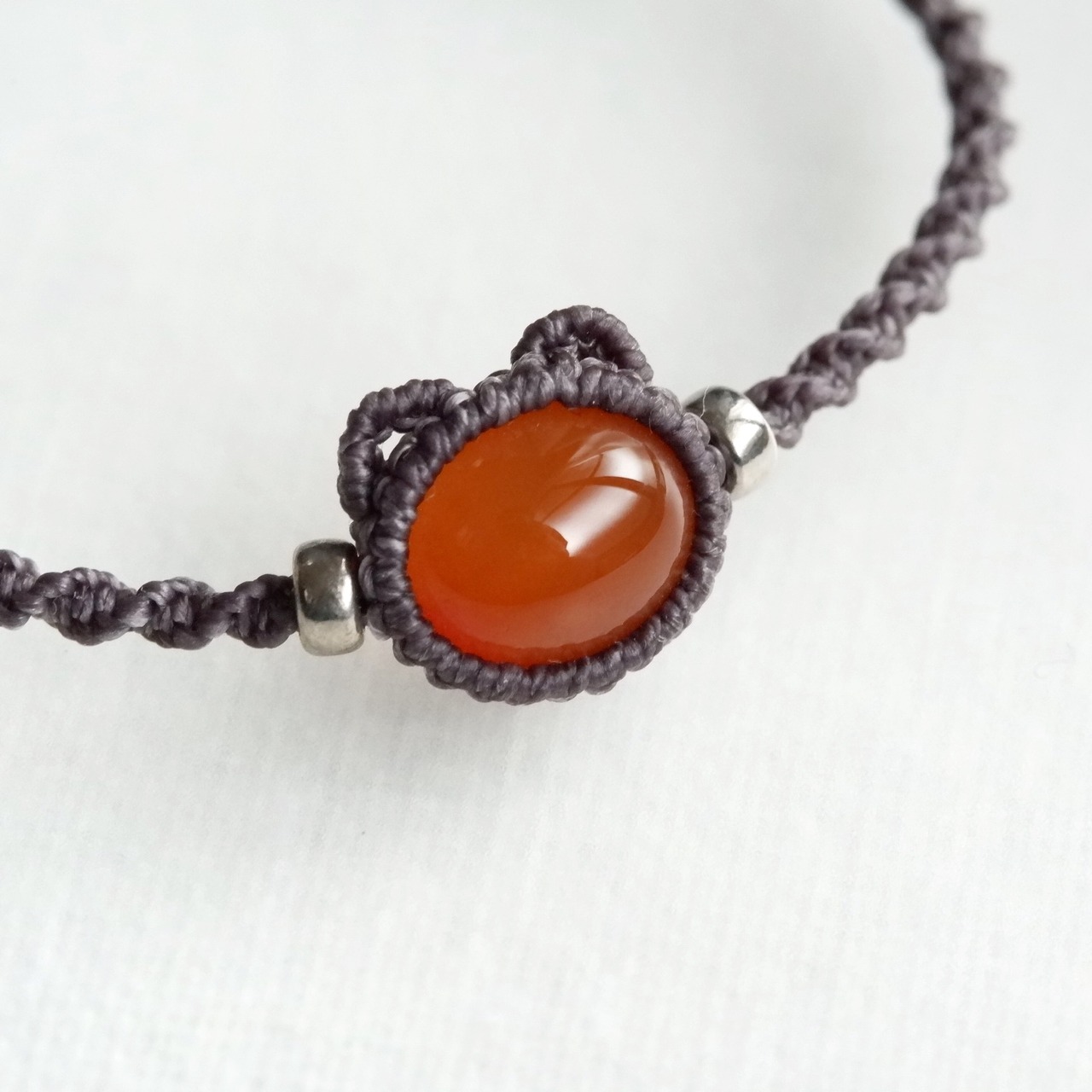 【受注生産】カーネリアンのグレー猫ちゃんブレスレット * マクラメ編み天然石アクセサリー