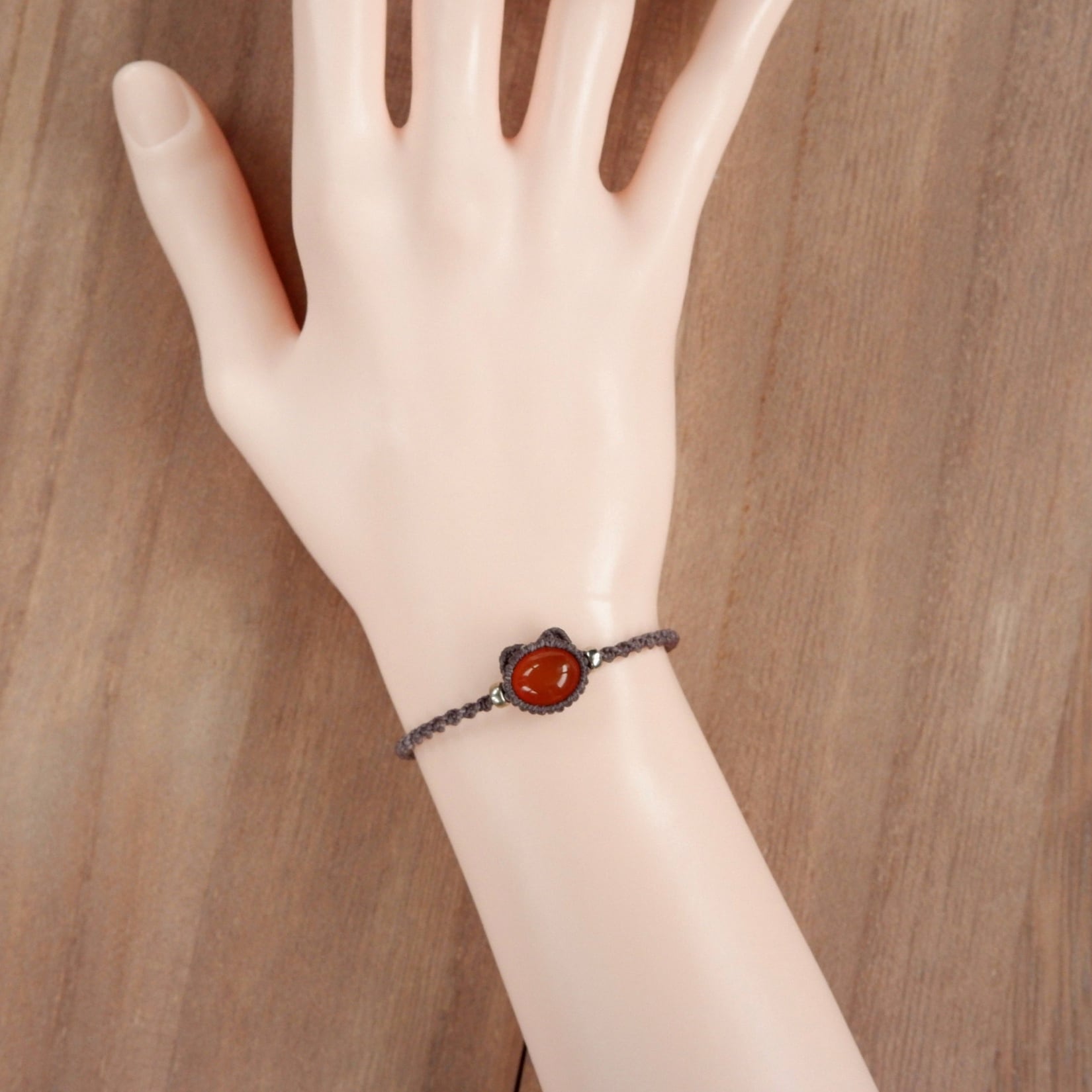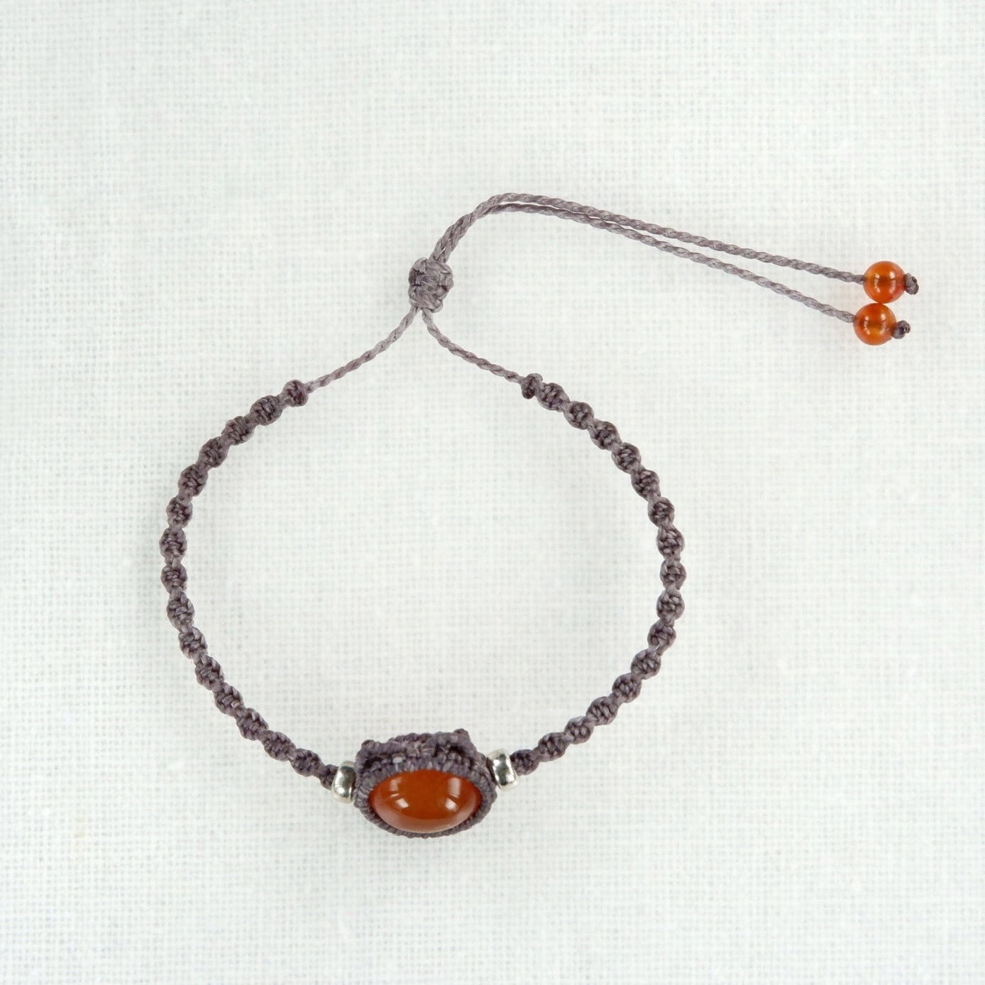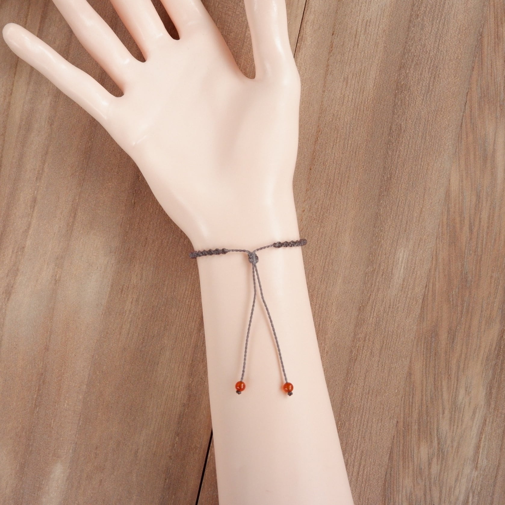 【受注生産】カーネリアンのグレー猫ちゃんブレスレット * マクラメ編み天然石アクセサリー