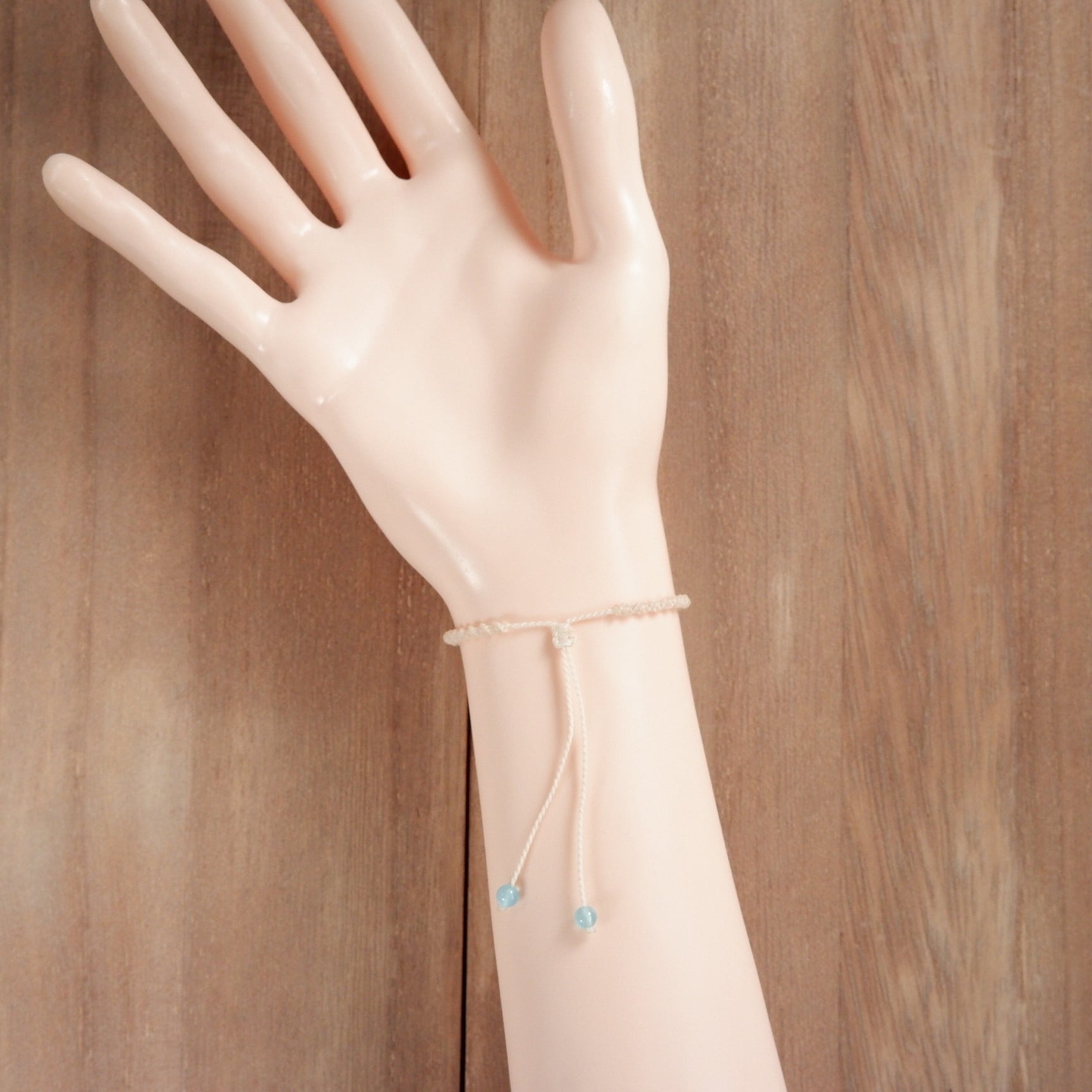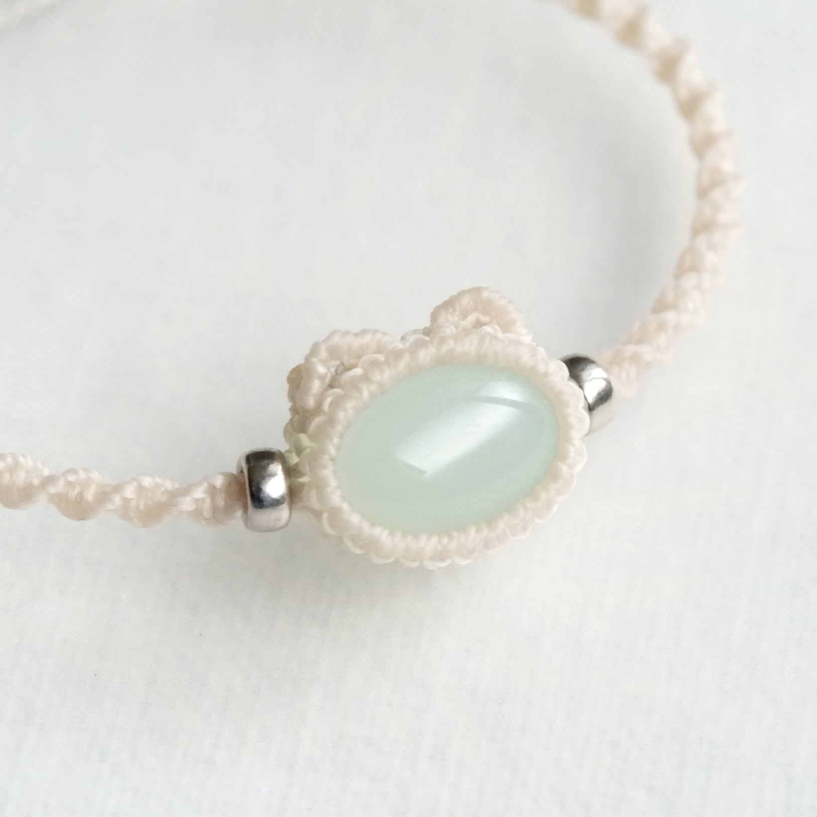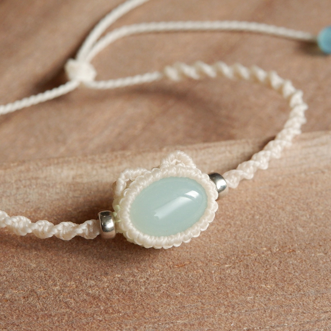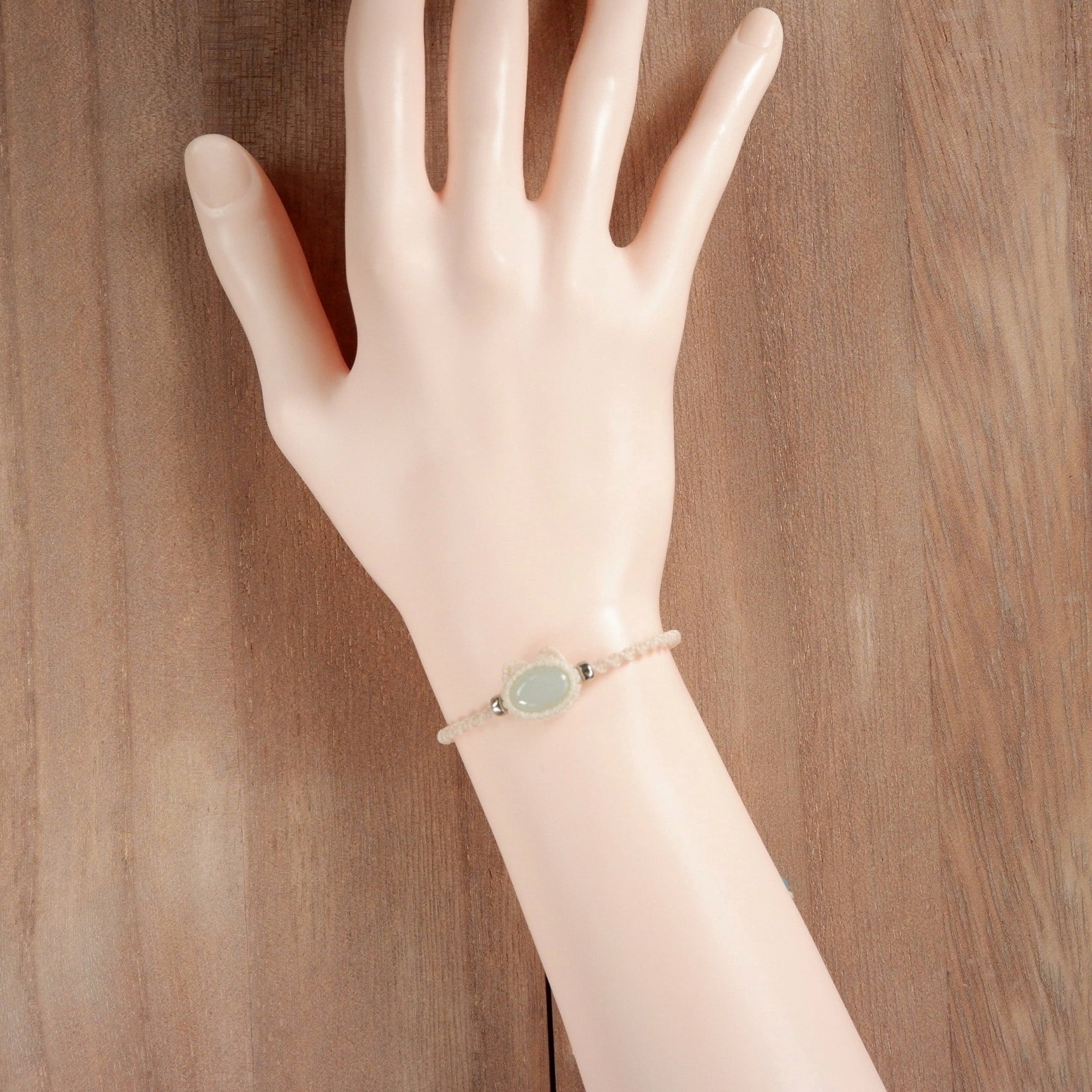 【受注生産】ブルーカルセドニーの白猫ちゃんブレスレット * マクラメ編み天然石アクセサリー
