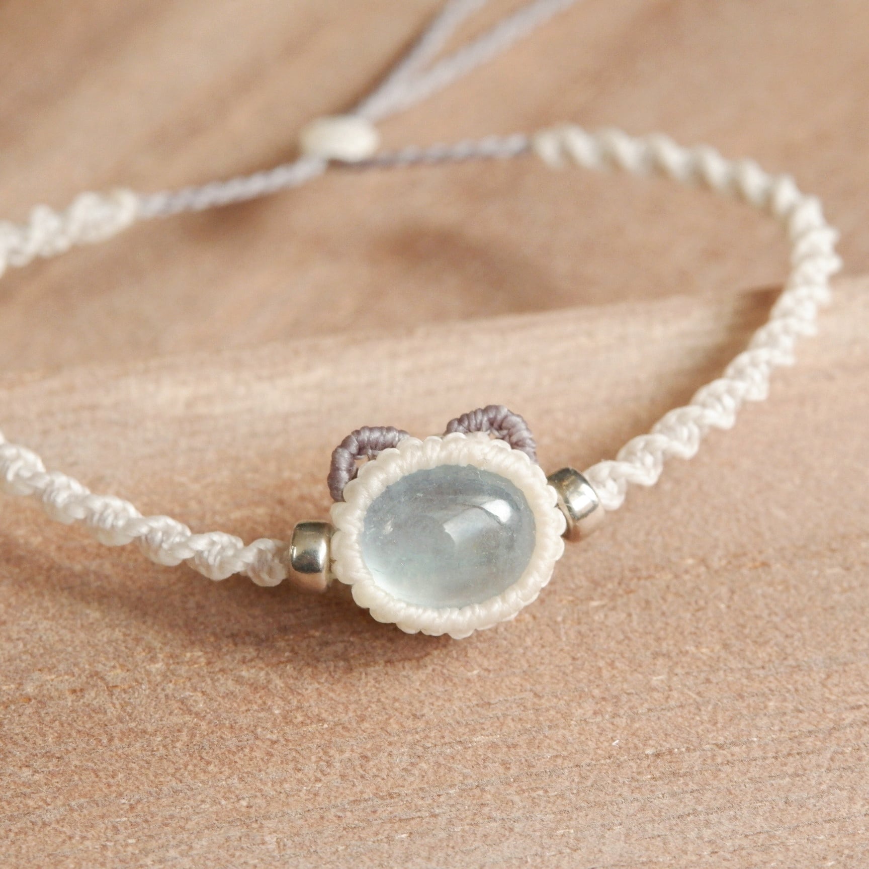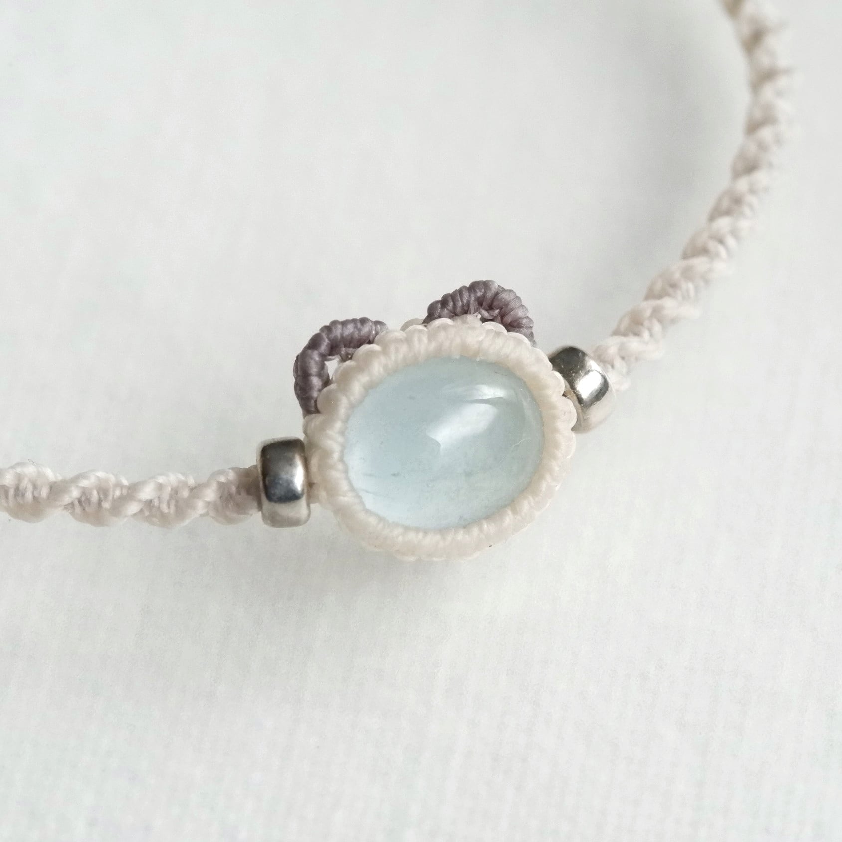 【受注制作】アクアマリンのシャム猫ブレスレット ポインテッド ラグドール * マクラメ編み silver925 猫アクセサリー 天然石ブレスレット