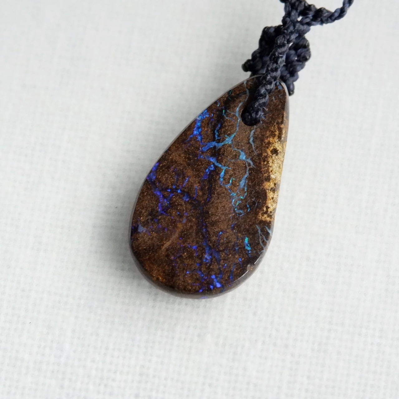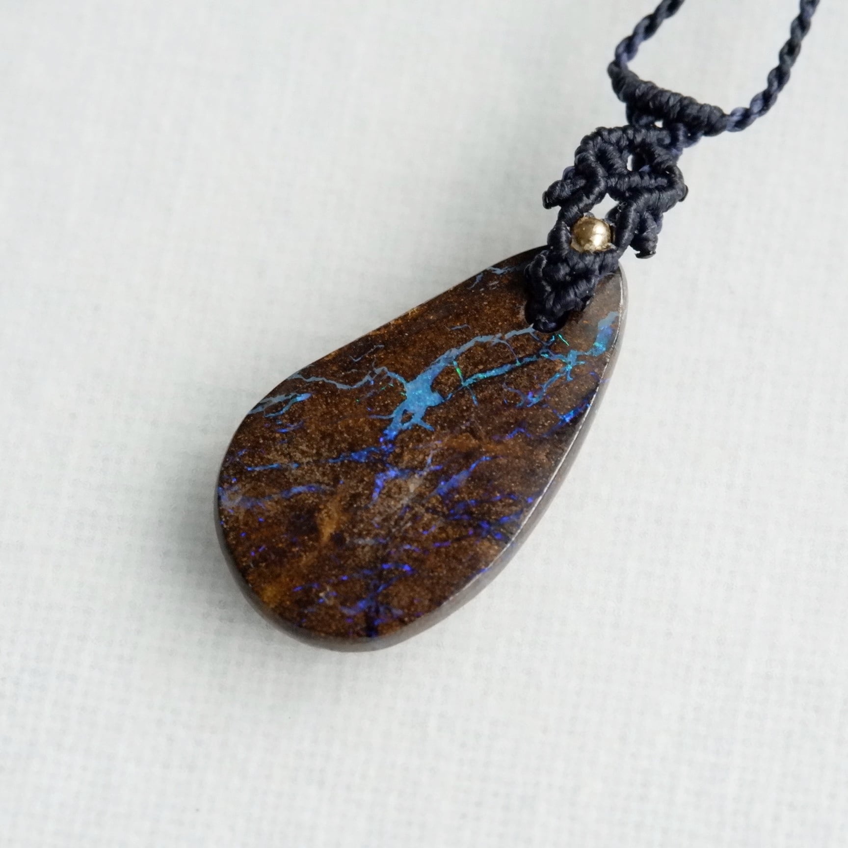 ダークブラウンの母岩の隙間にブルー系のオパールが入り込んだルースをセレクト。