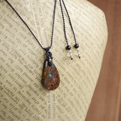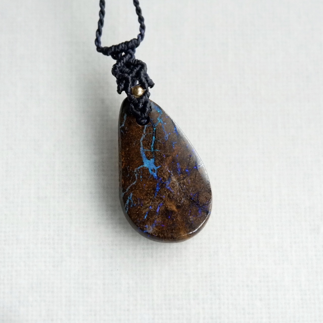 【1点もの】ピクチャーオパールのネックレス * マクラメ編み天然石アクセサリー