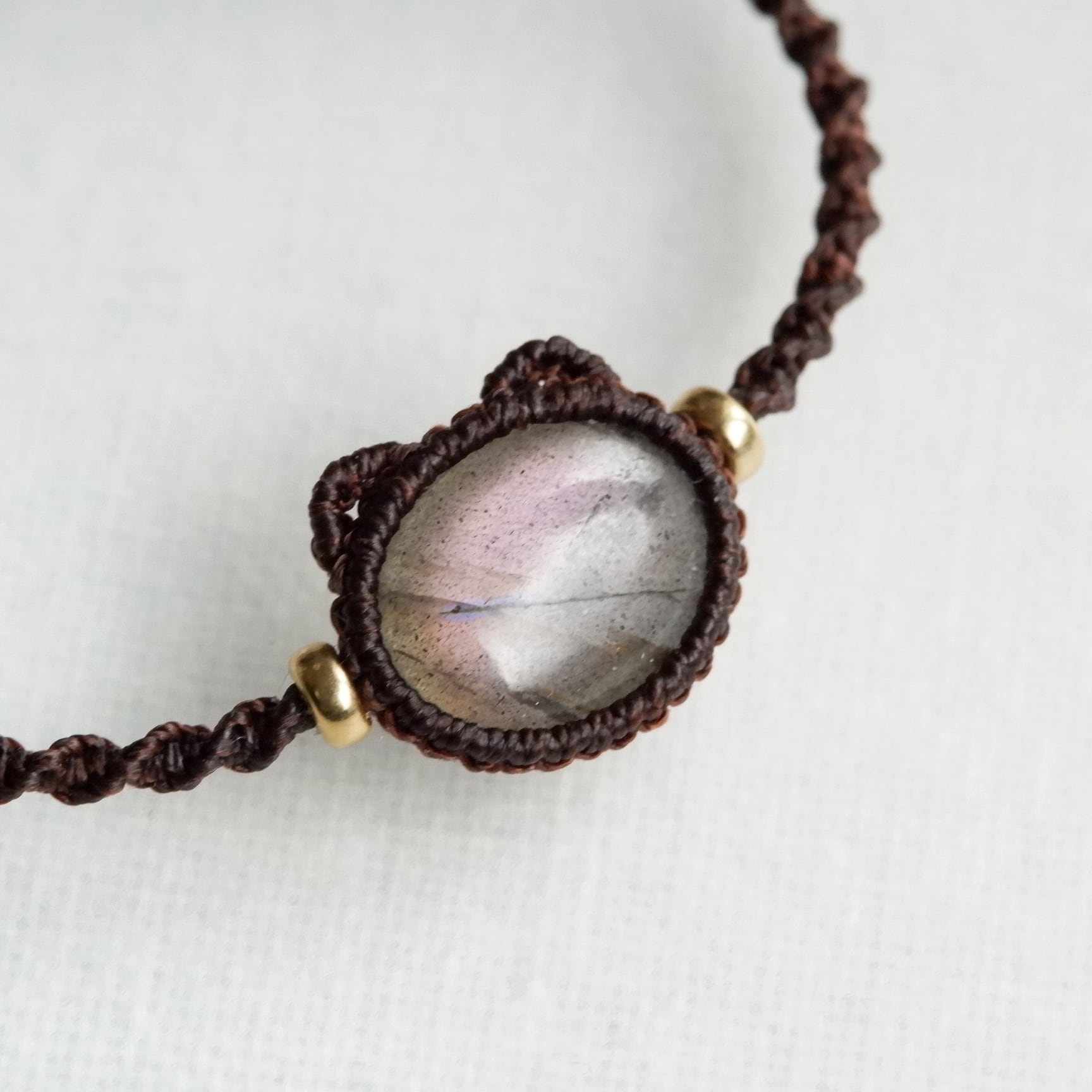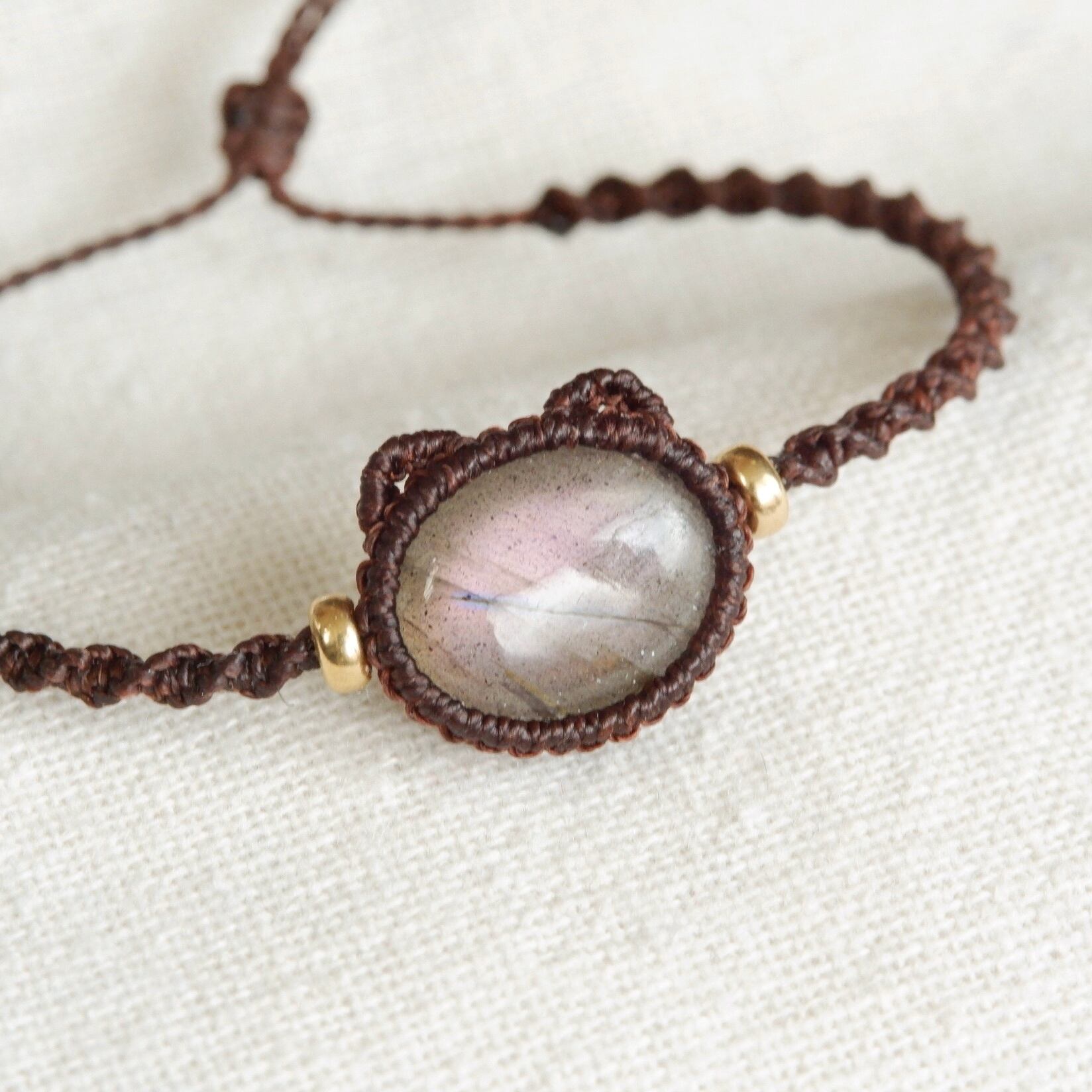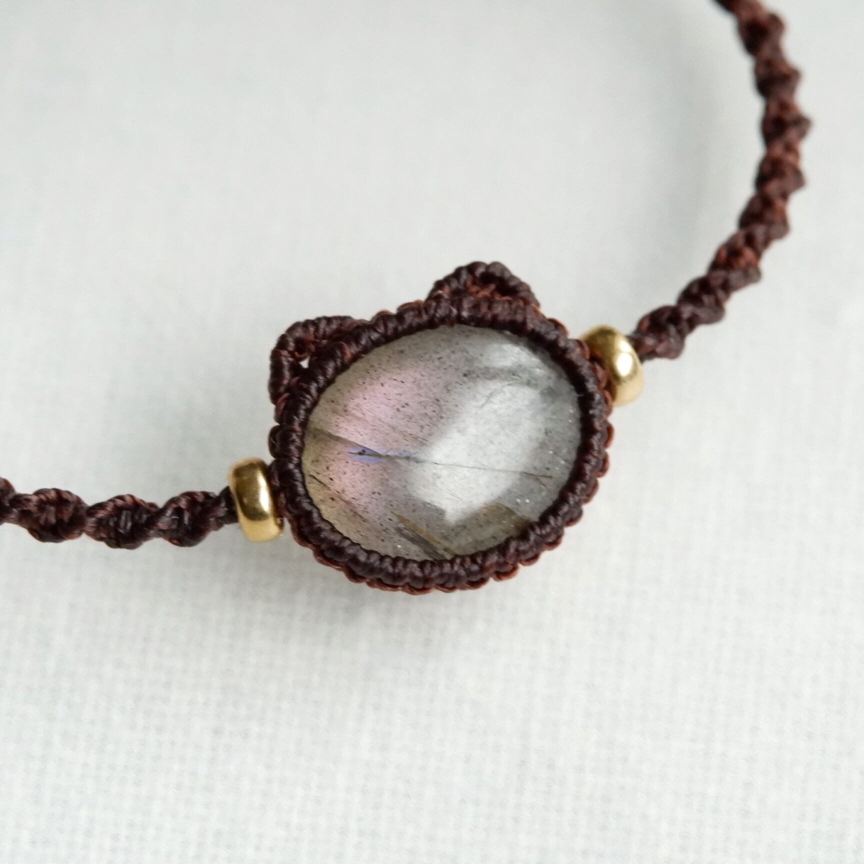 【1点もの】ラブラドライトの猫ブレスレット * マクラメ編み 猫アクセサリー 天然石ブレスレット
