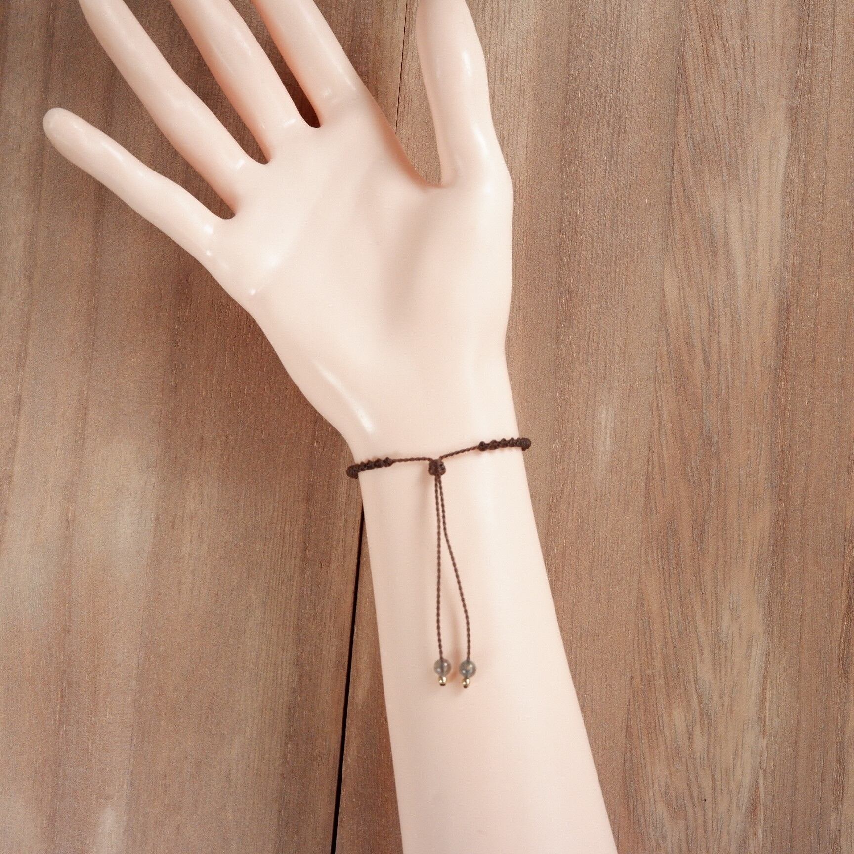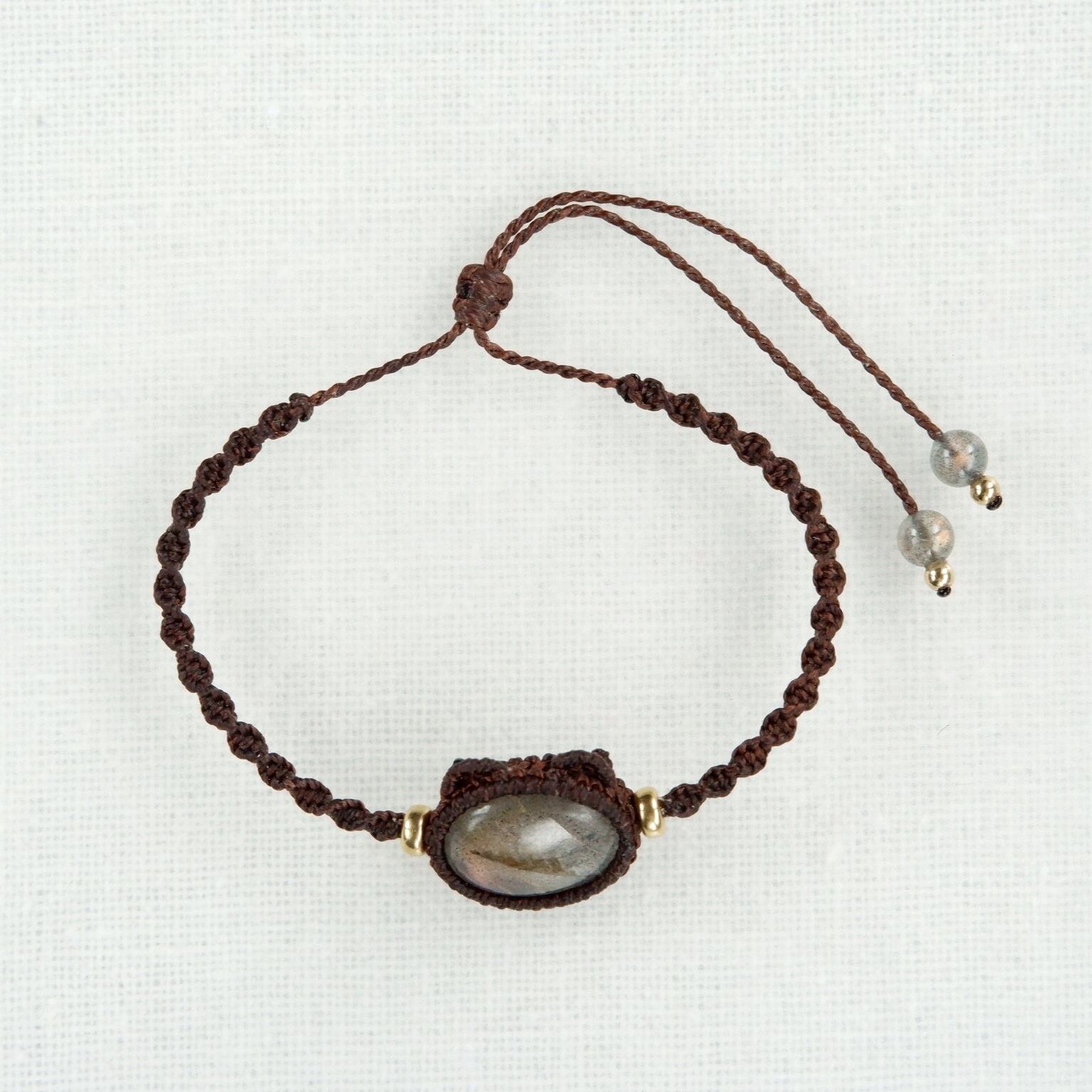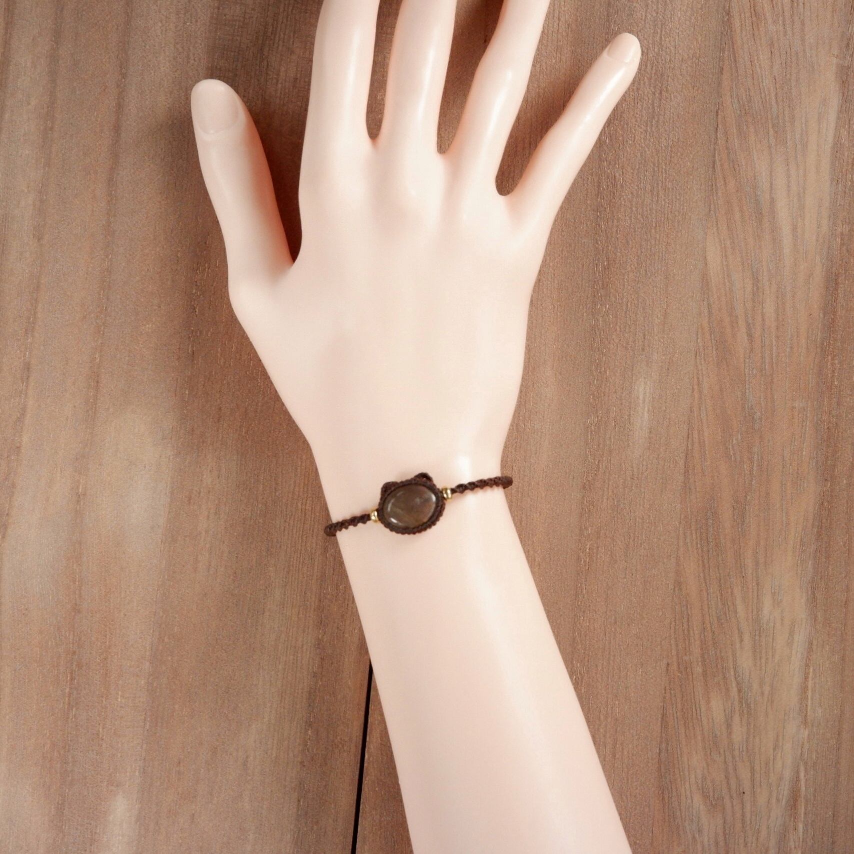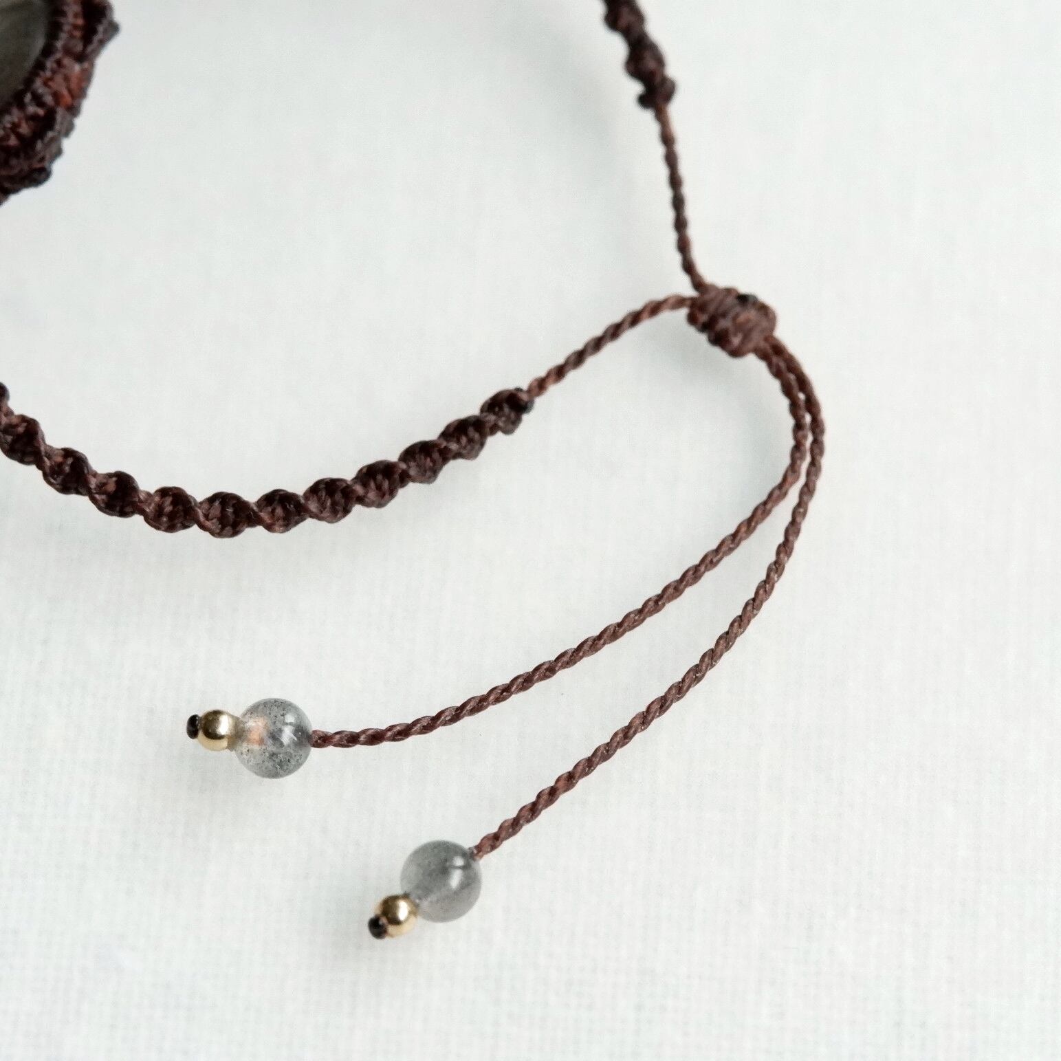 【1点もの】ラブラドライトの猫ブレスレット * マクラメ編み 猫アクセサリー 天然石ブレスレット
