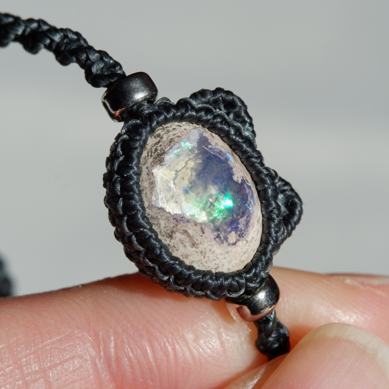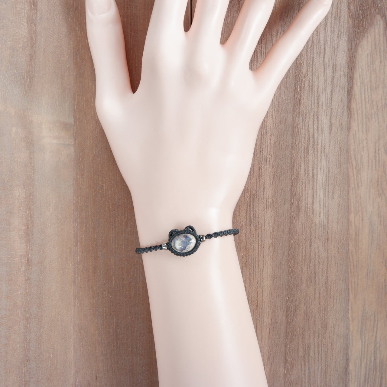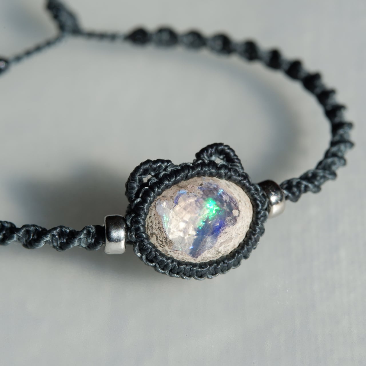 【1点もの】カンテラオパールの石猫ちゃんブレスレット * マクラメ編み天然石アクセサリー