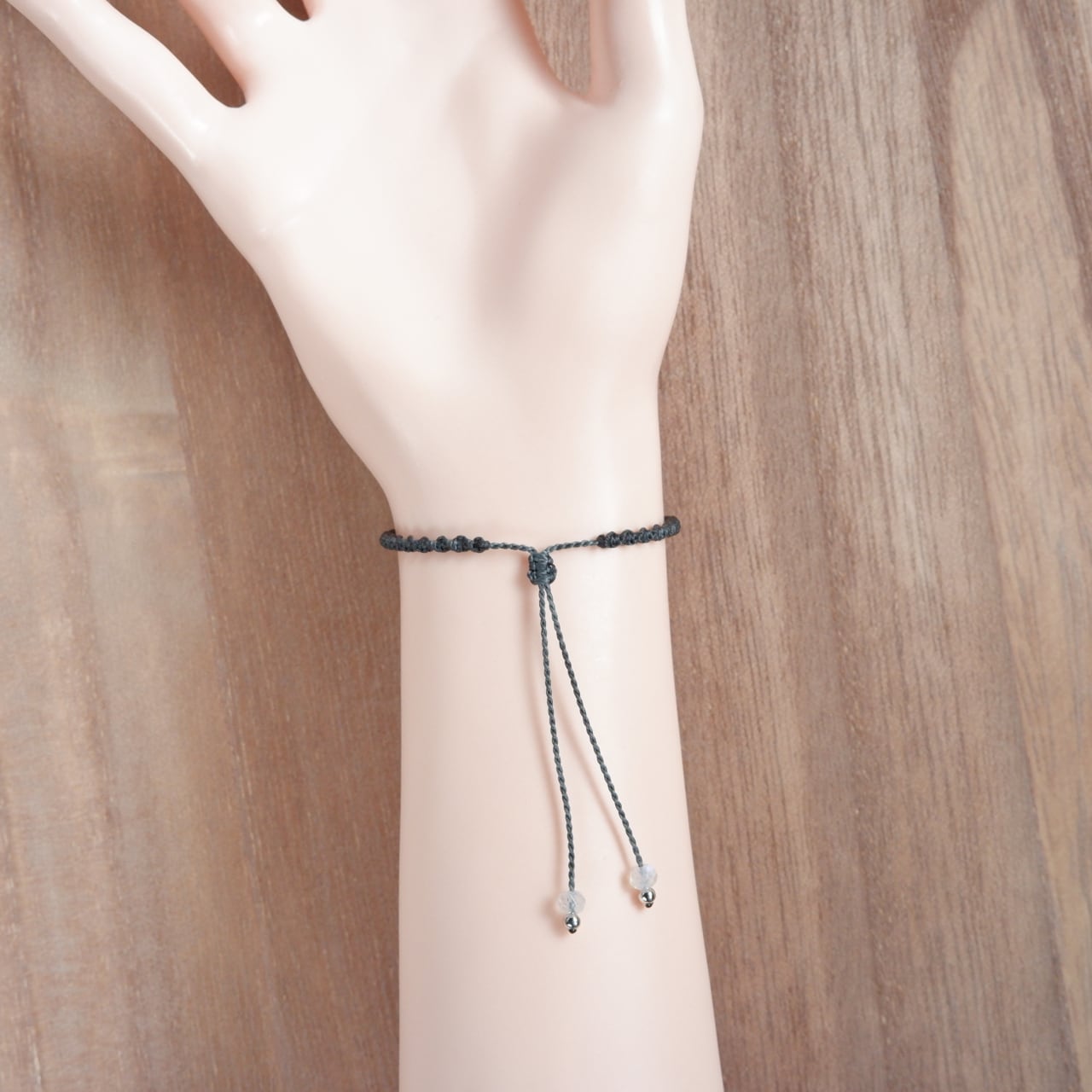 紐は石と同系色のブルーグレーで合わせ、