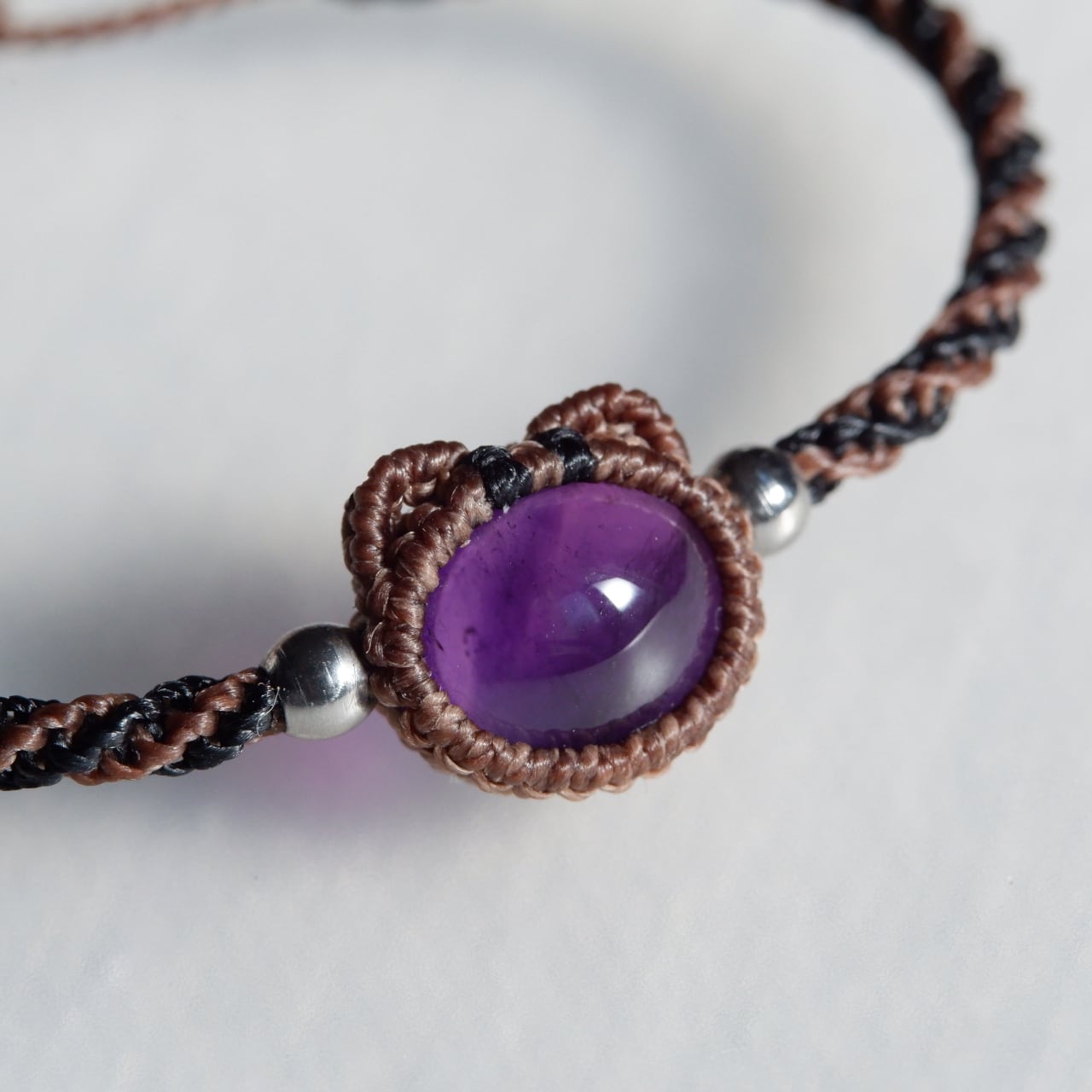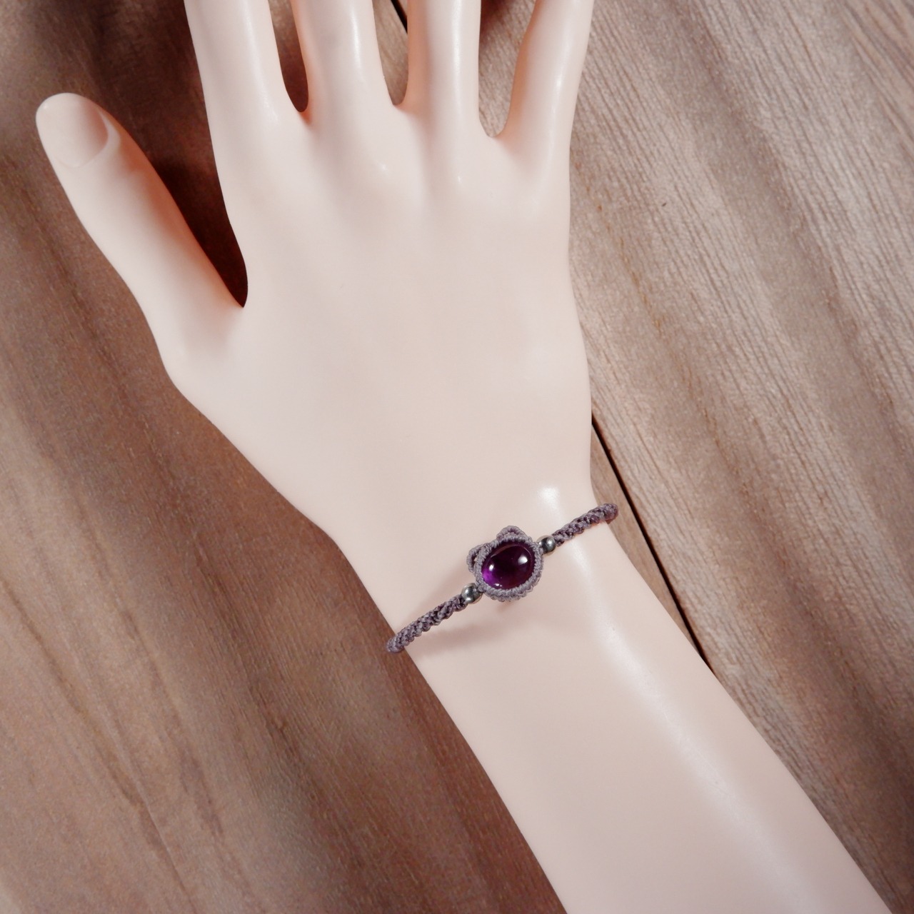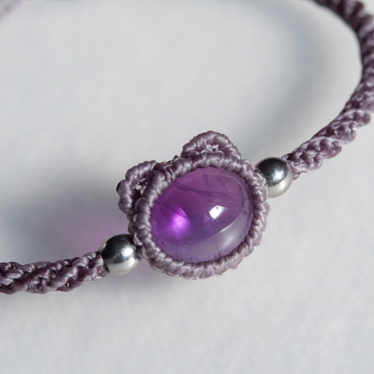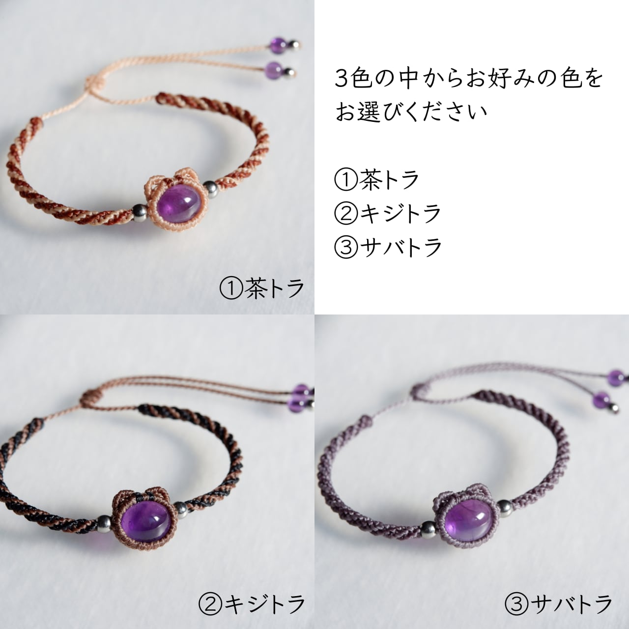 毛色が選べる 猫ブレスレット|2月誕生石:アメジスト|受注制作|茶トラ|キジトラ|サバトラ|マクラメ編み 猫アクセサリー