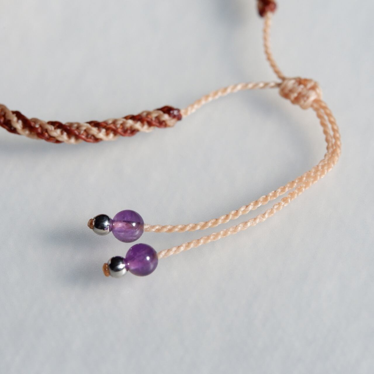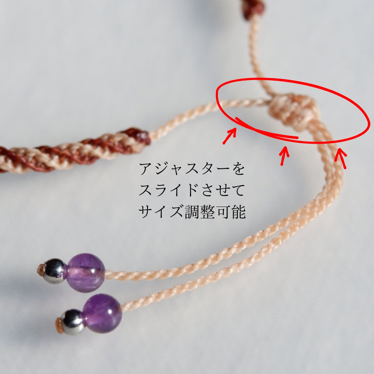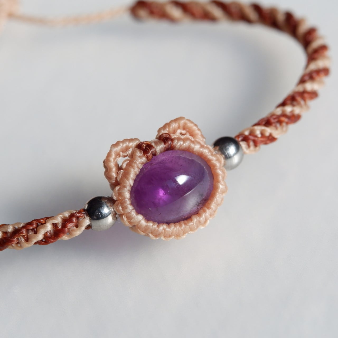 毛色が選べる 猫ブレスレット|2月誕生石:アメジスト|受注制作|茶トラ|キジトラ|サバトラ|マクラメ編み 猫アクセサリー