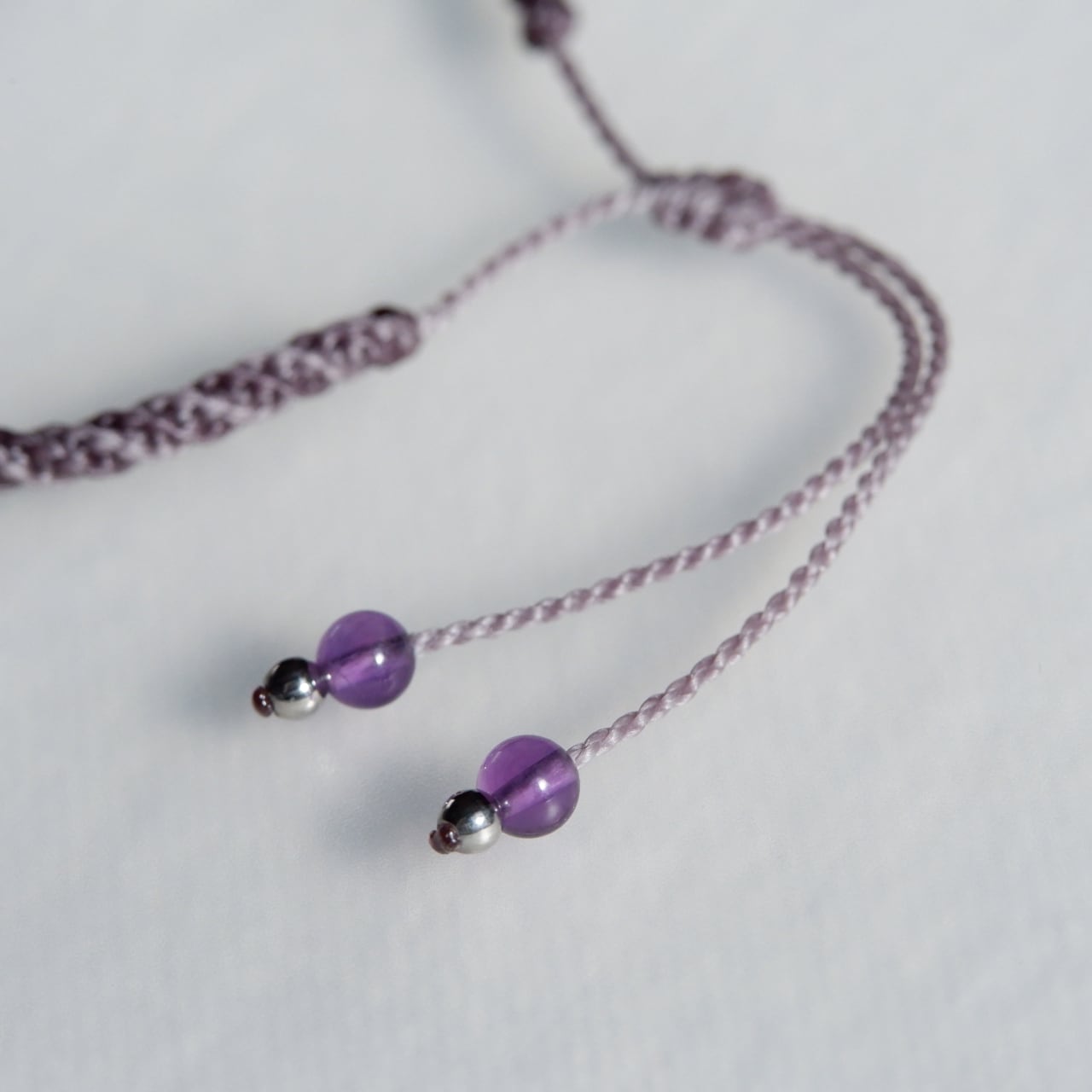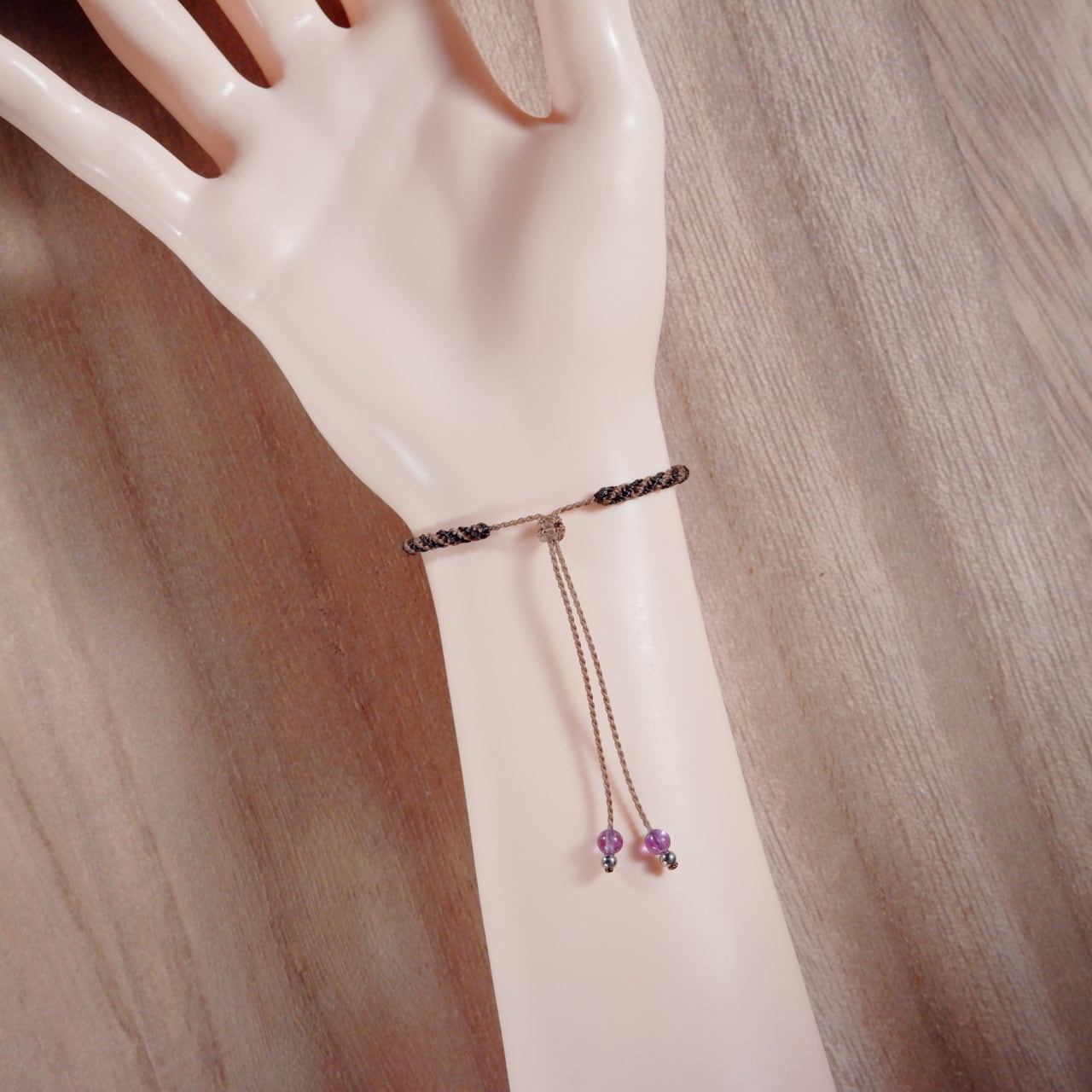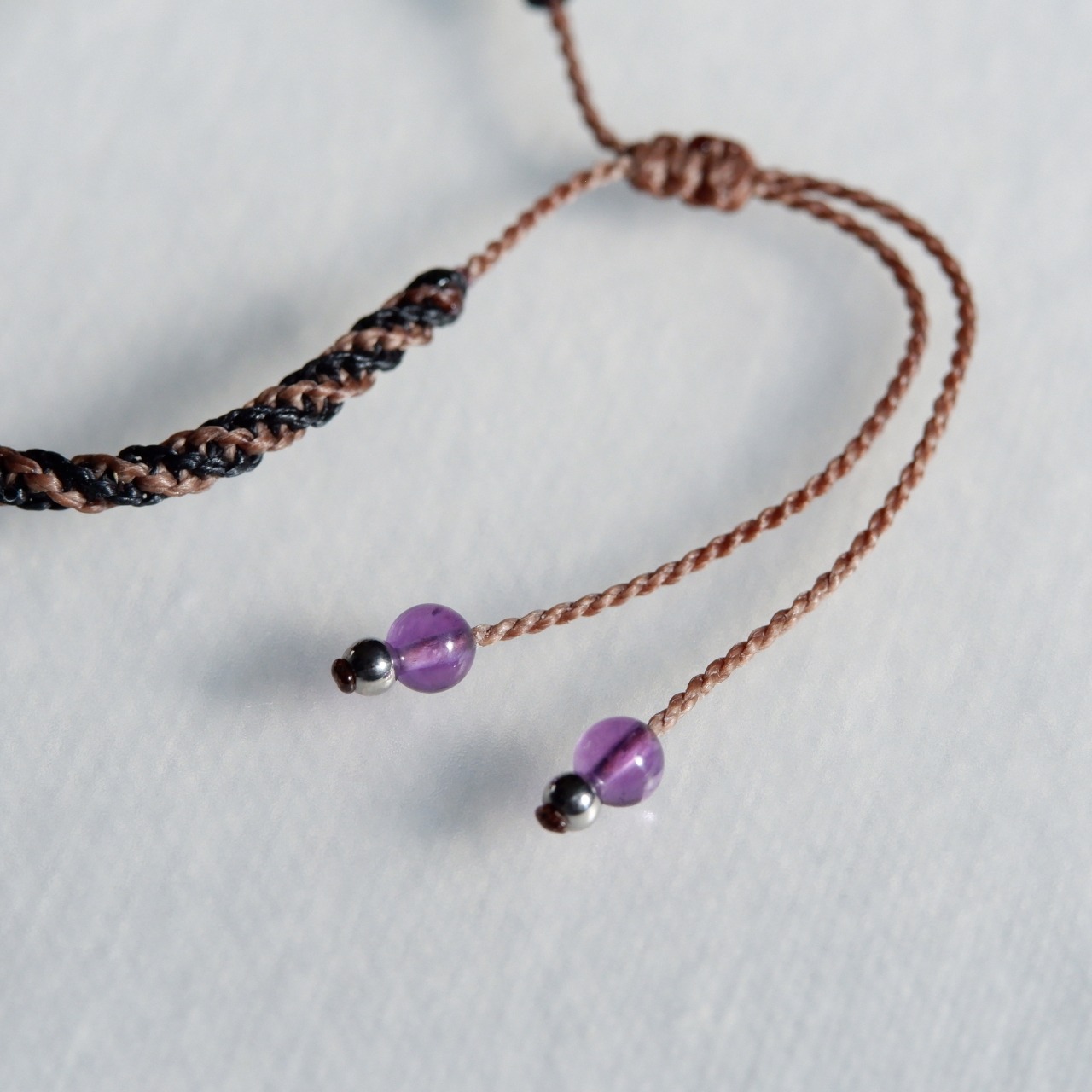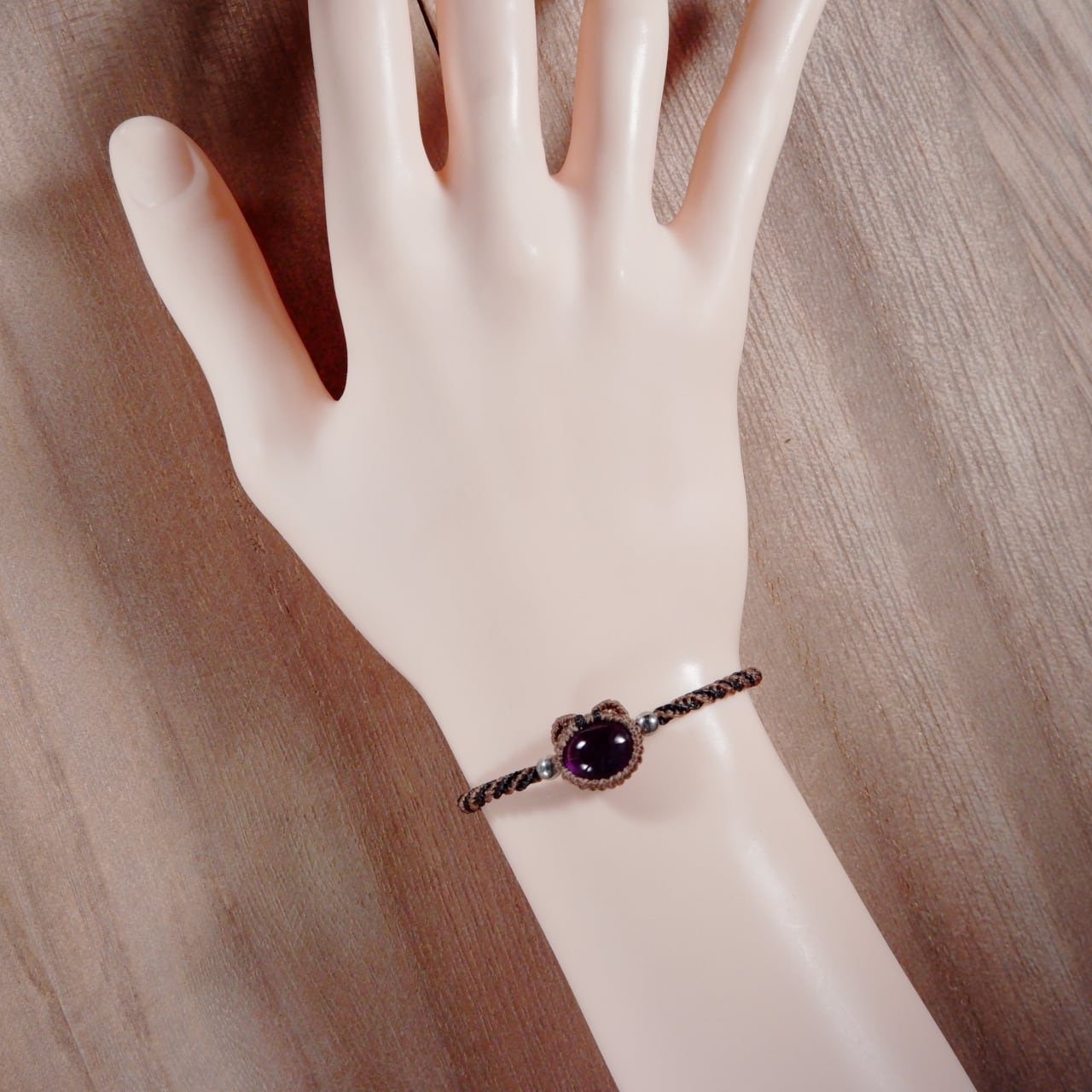 毛色が選べる 猫ブレスレット|2月誕生石:アメジスト|受注制作|茶トラ|キジトラ|サバトラ|マクラメ編み 猫アクセサリー