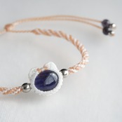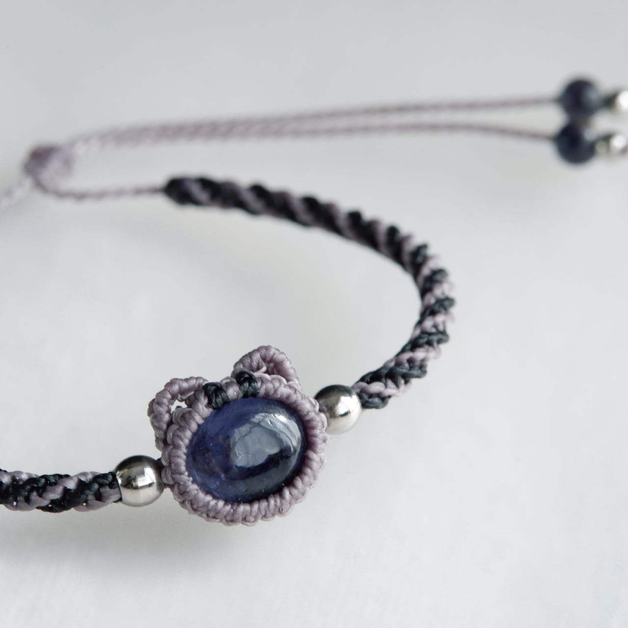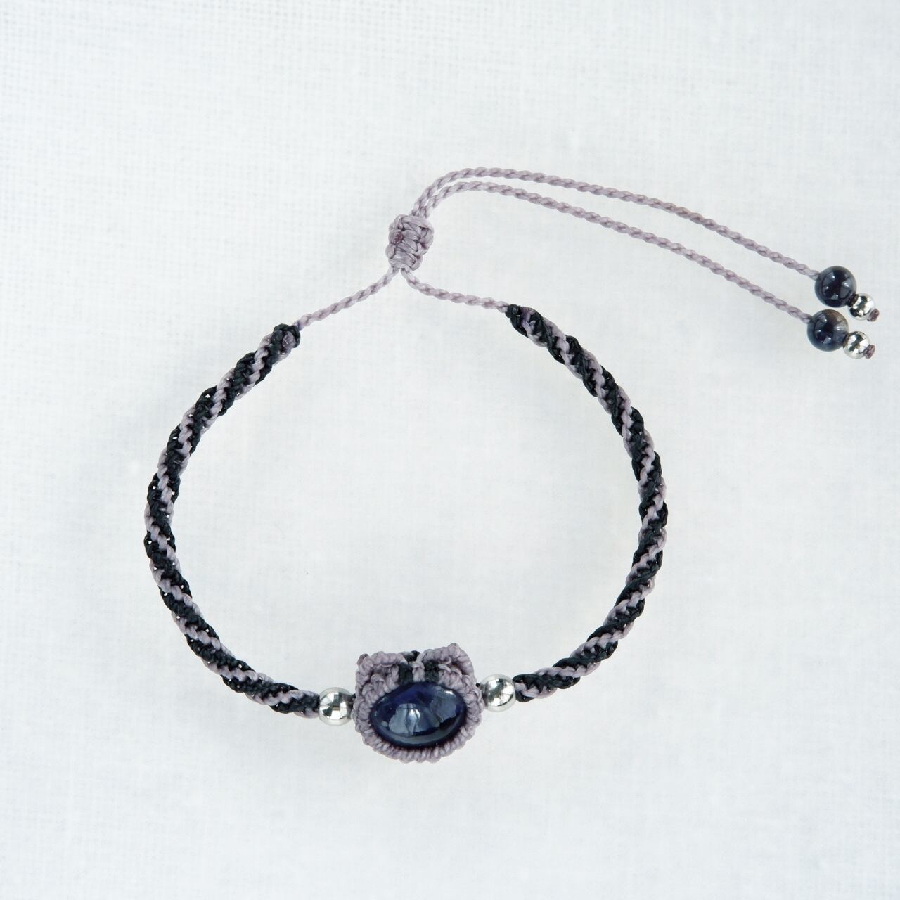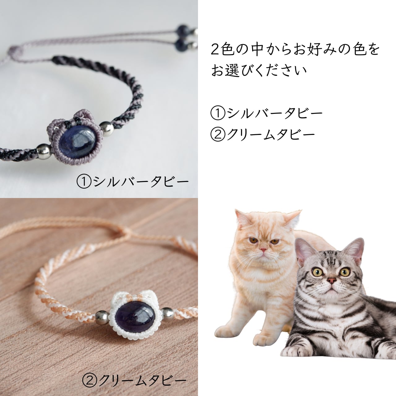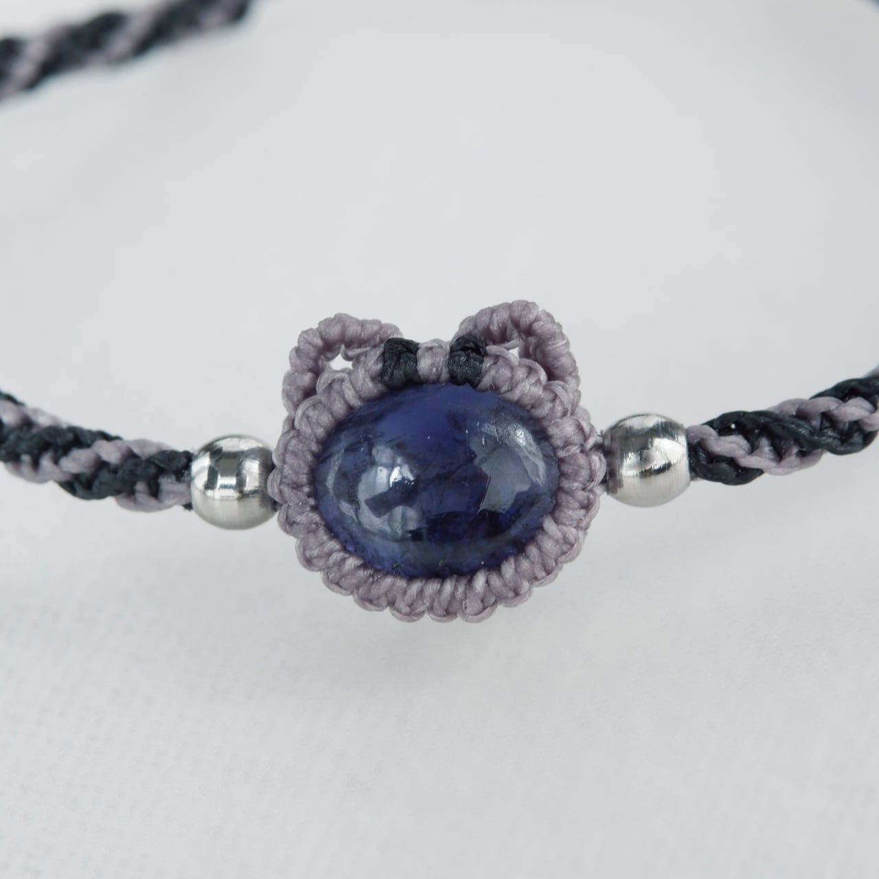 毛色が選べる 猫ブレスレット|3月誕生石:アイオライト|受注制作|アメリカンショートヘア|シルバータビー|クリームタビー|マクラメ編み 猫アクセサリー