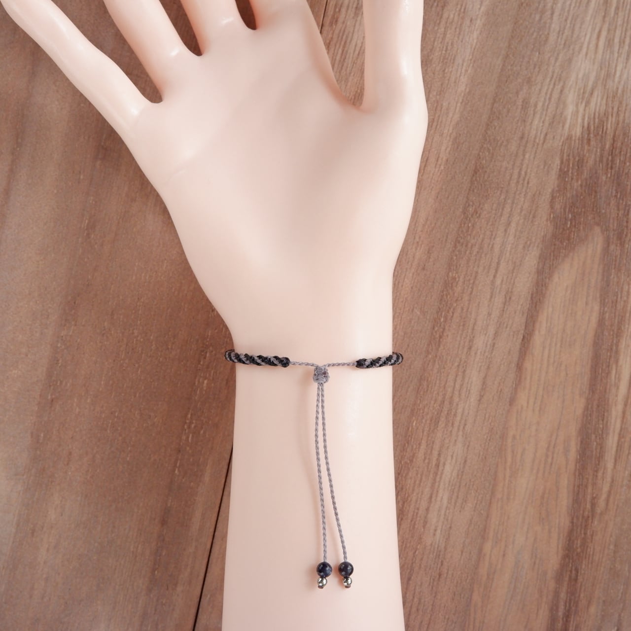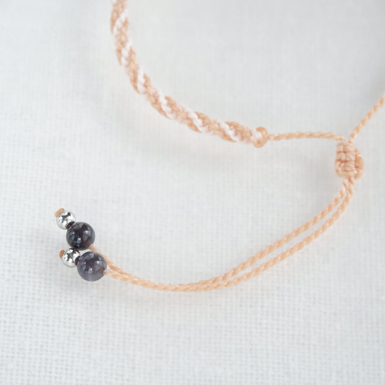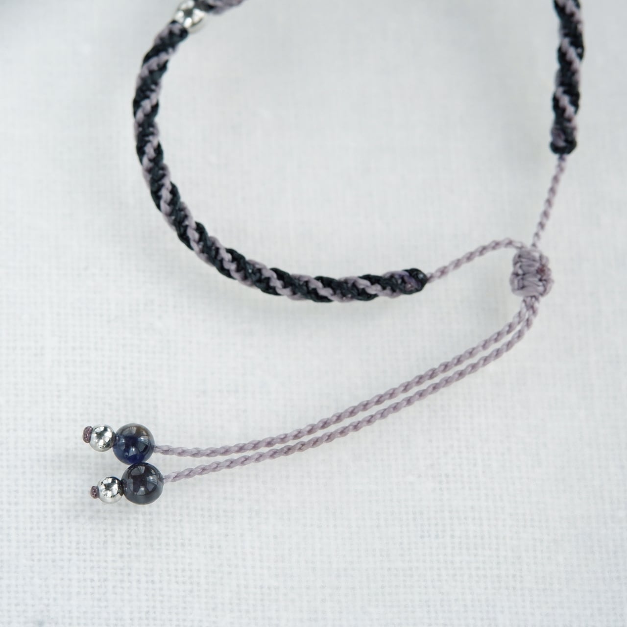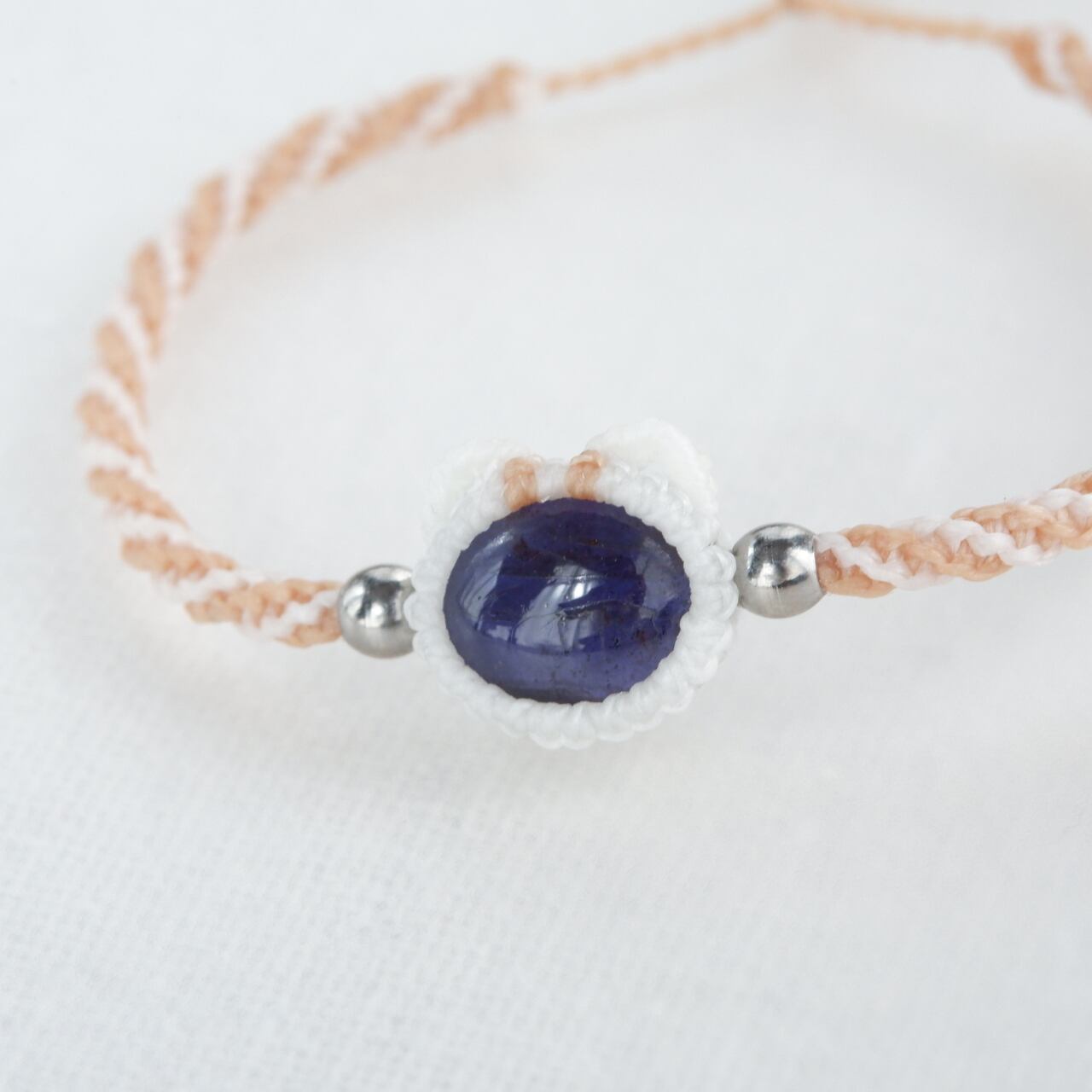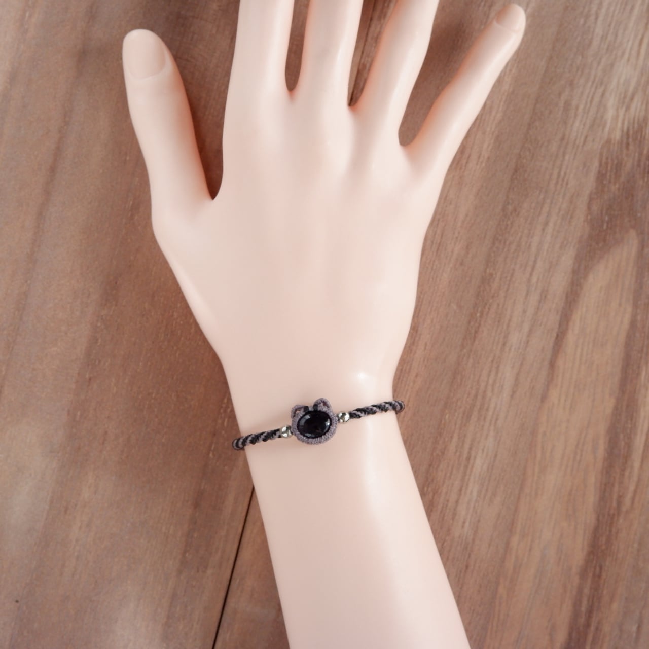 毛色が選べる 猫ブレスレット|3月誕生石:アイオライト|受注制作|アメリカンショートヘア|シルバータビー|クリームタビー|マクラメ編み 猫アクセサリー