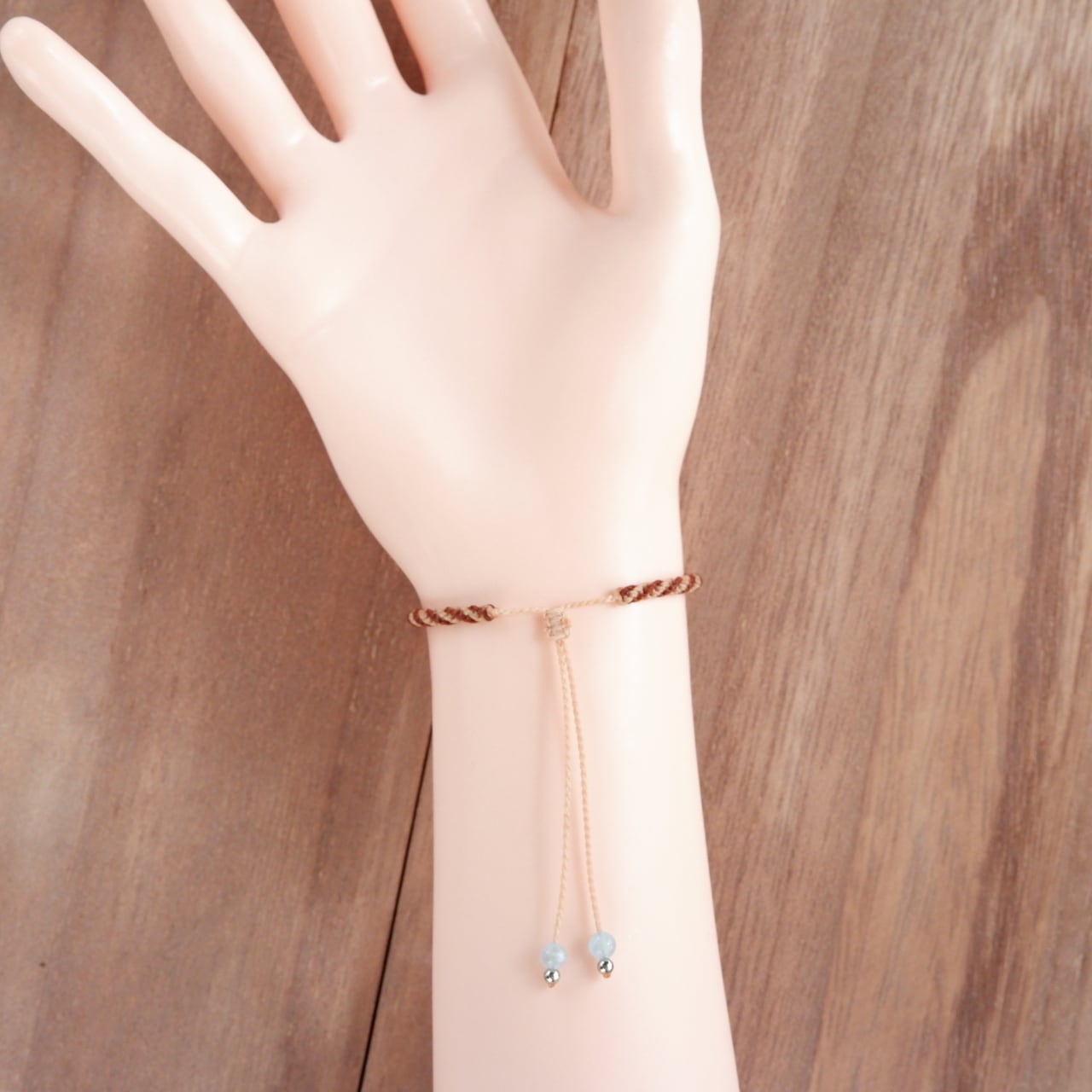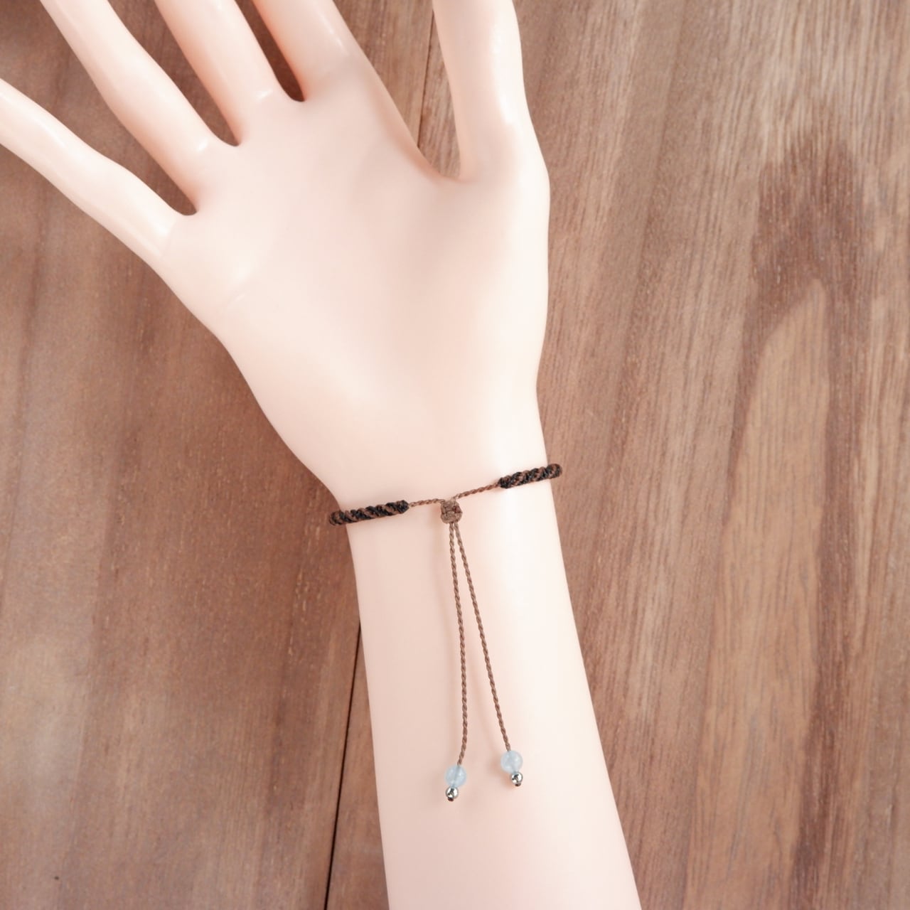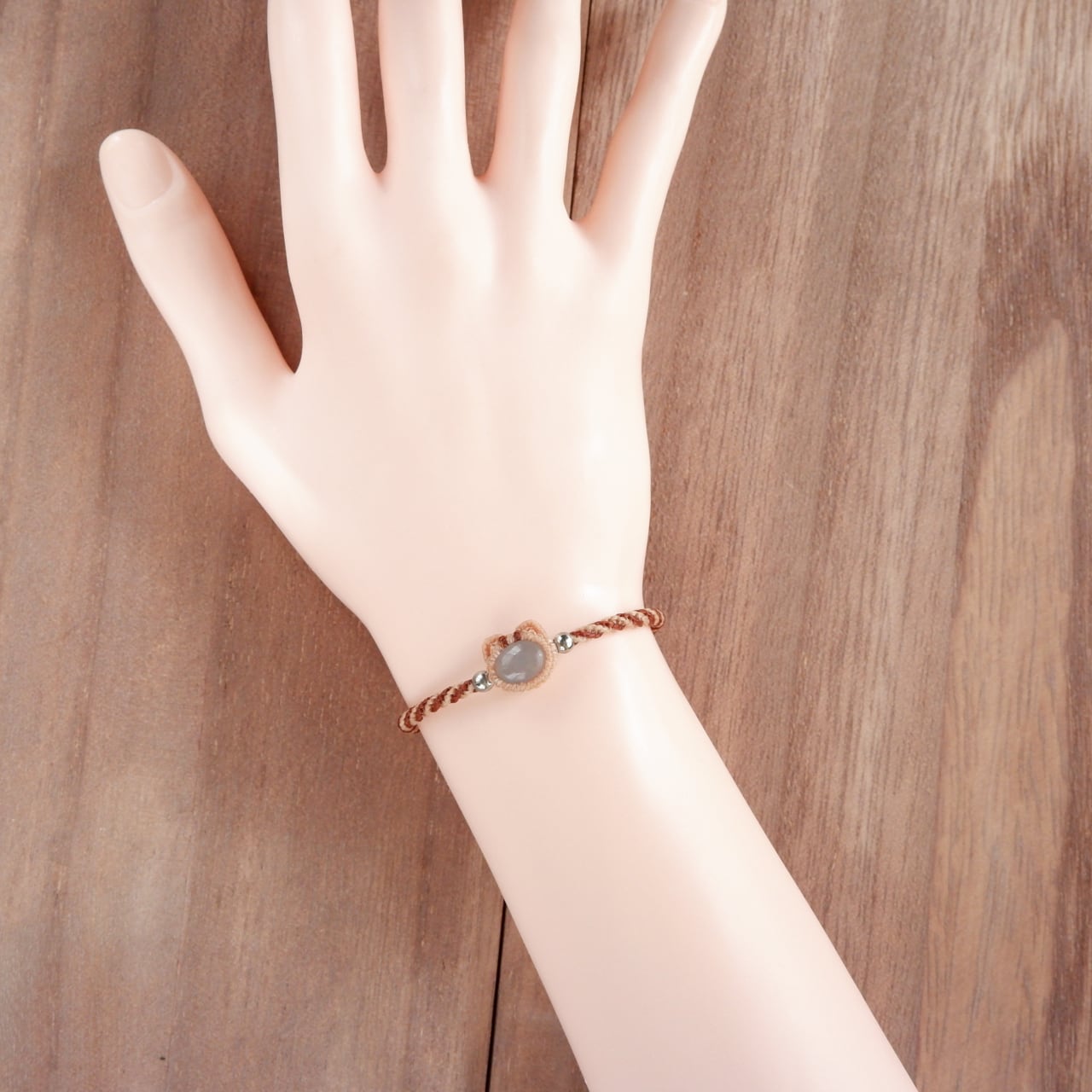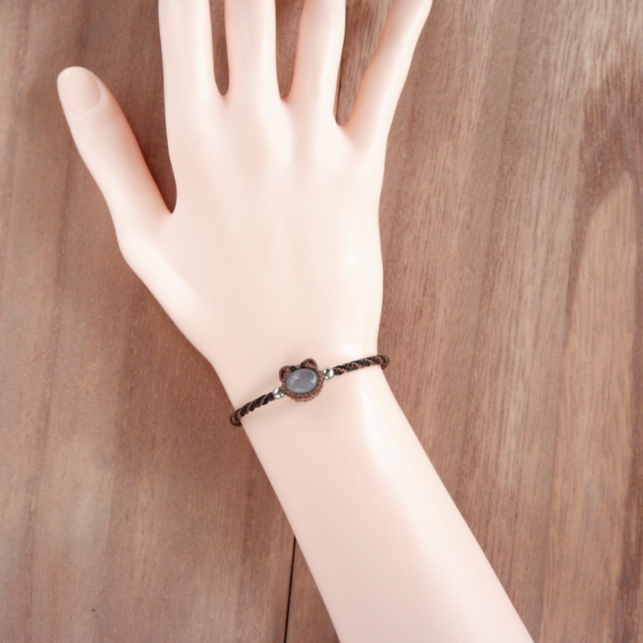 毛色が選べる 猫ブレスレット|3月誕生石:アクアマリン|受注制作|茶トラ|キジトラ|マクラメ編み 猫アクセサリー
