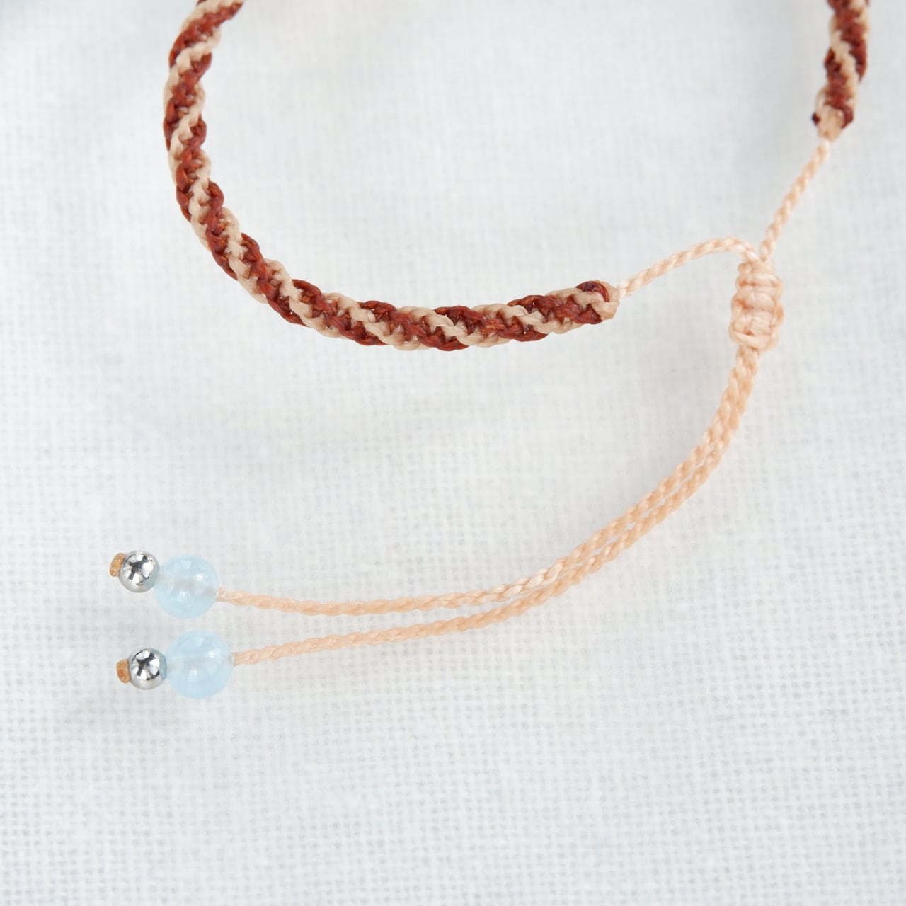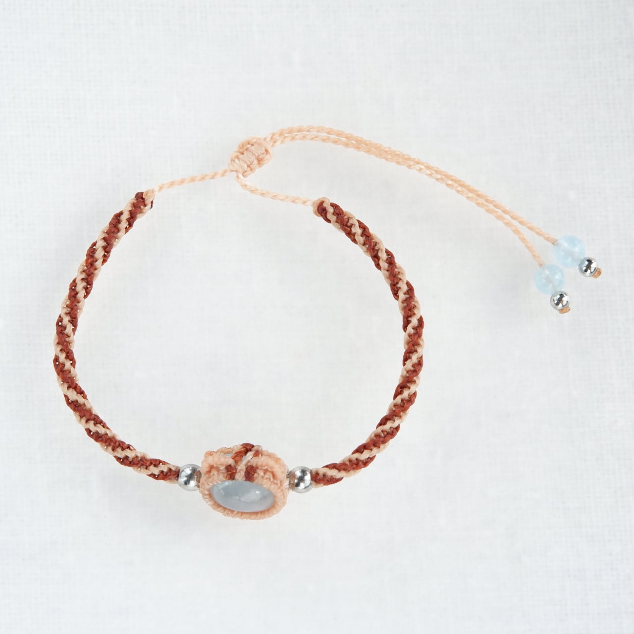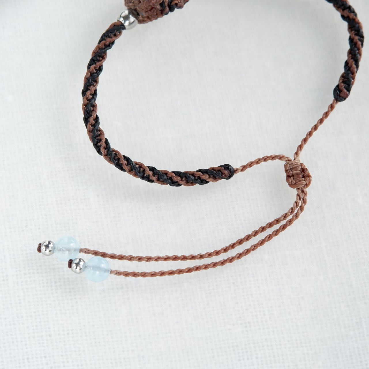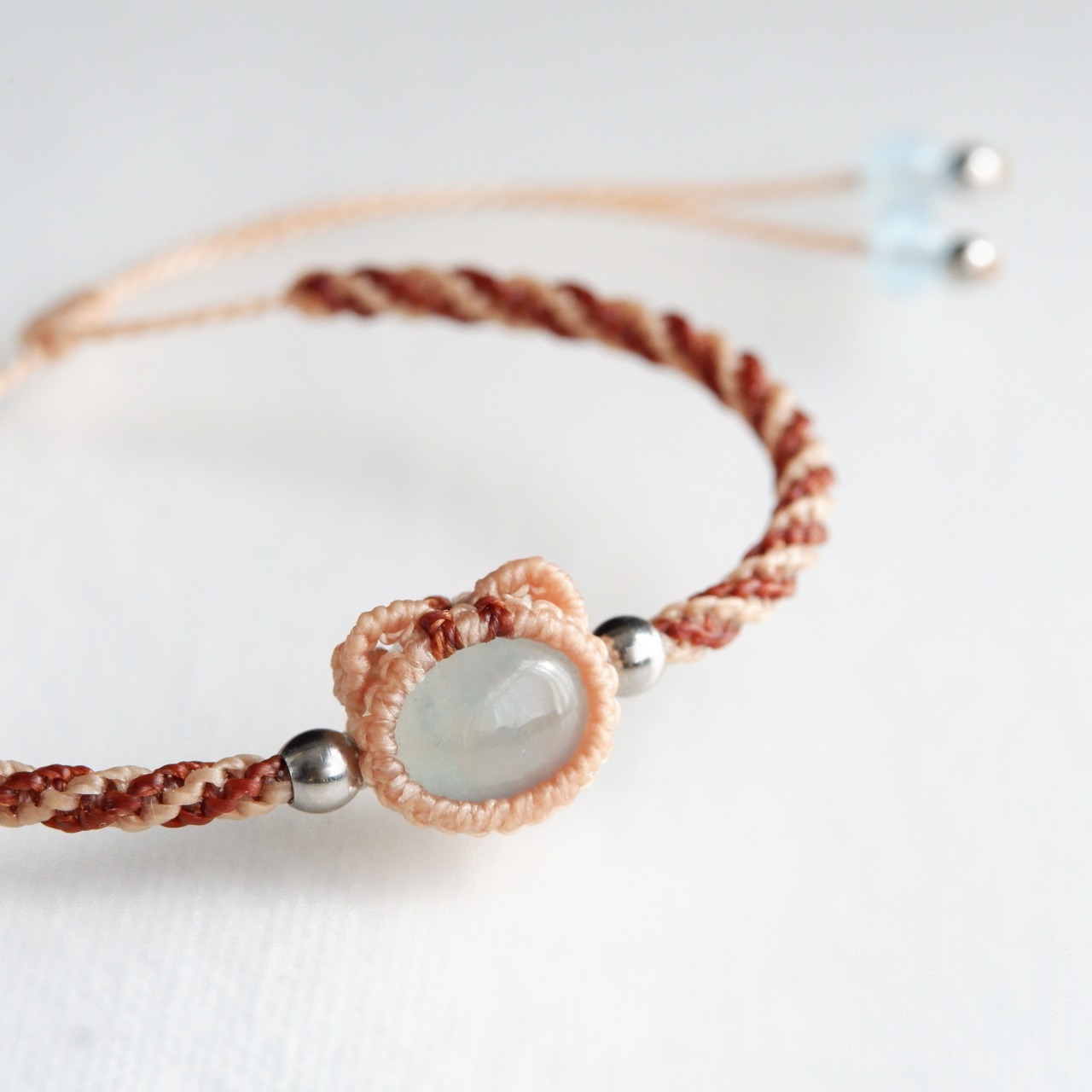 毛色が選べる 猫ブレスレット|3月誕生石:アクアマリン|受注制作|茶トラ|キジトラ|マクラメ編み 猫アクセサリー